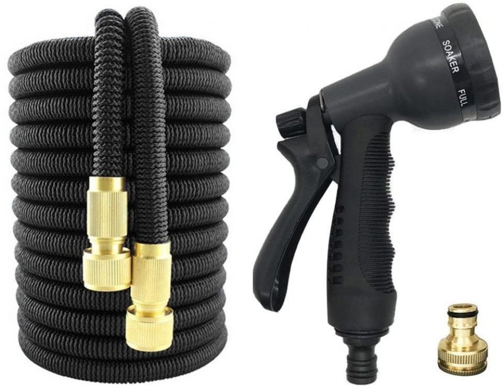 Zahradní hadice je nejpoužívanější zahradní technika, která se hodí nejen na zahradu, ale i pro další činnosti, jako je mytí auta, mytí koberců, mytí podlahy atd.Ve srovnání s tradičními zahradními hadicemi je velmi lehká. Po naplnění vodou hadice třikrát zvětší svou délku a udržuje ji během používání. Po ukončení práce není potřeba ručně vylévat vodu, která se automaticky vytlačí.Během provozu se na rozdíl od zařízení starého typu nerozpadá a nezamotává se. Hadice je vybavena spojovacími prvky, které jsou odolné vůči vysokému tlaku vody, díky čemuž bude sloužit dlouhou dobu.Sada obsahuje také háček, na který můžete hadici zavěsit, když ji neseženeteSada obsahuje i hrot pro uchycení na závitník. Hadice je vyrobena z kvalitní polyesterové pásky, dvojité vrstvy latexu a ABS plastu.Sada navíc obsahuje multifunkční postřikovač s 8 režimy a funkcí zámku. K zablokování spouště stačí kývnout kovovým háčkem na zbrani. Voda pak poteče, aniž byste museli neustále mačkat spoušť pistole. Pistole má také pohodlnou protiskluzovou rukojeť.TECHNICKÉ SPECIFIKACE:✅ Protáhne se pod vlivem vody 3x✅ Lehký a šikovný✅ Zabere málo místa✅ Má multifunkční rozprašovač s 8 režimy✅ Má 1/2palcový rychlospojkový instalační konec✅ Odolné vůči povětrnostním vlivům✅ Nezamotává se✅ Tvarovaná, pohodlná pistolová rukojeť.✅ Konec se našroubuje na závit kohoutku✅ Háček✅ Taška se šňůrkou na zabalení✅ Barva: černá✅ Dosahuje působením vody z ~ 5 m do ~ 15 mSET OBSAHUJE:☑️ Zahradní hadice s rychlospojkami☑️ Stříkací pistole☑️ Adaptér ☑️ Háček☑️ Taška (pouzdro) na zahradní hadici
