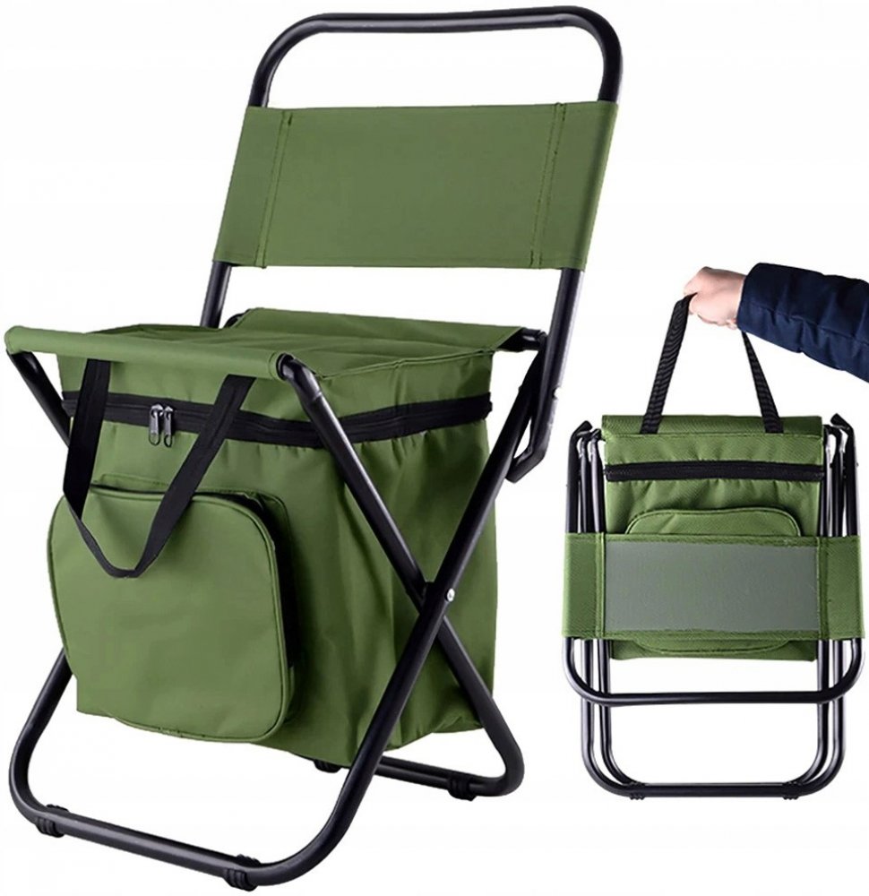 TURISTICKÉ SKLÁDACÍ RYBÁŘSKÉ KŘESLO S OPĚRADLEM PRO RYBY, TERMOTAŠKA