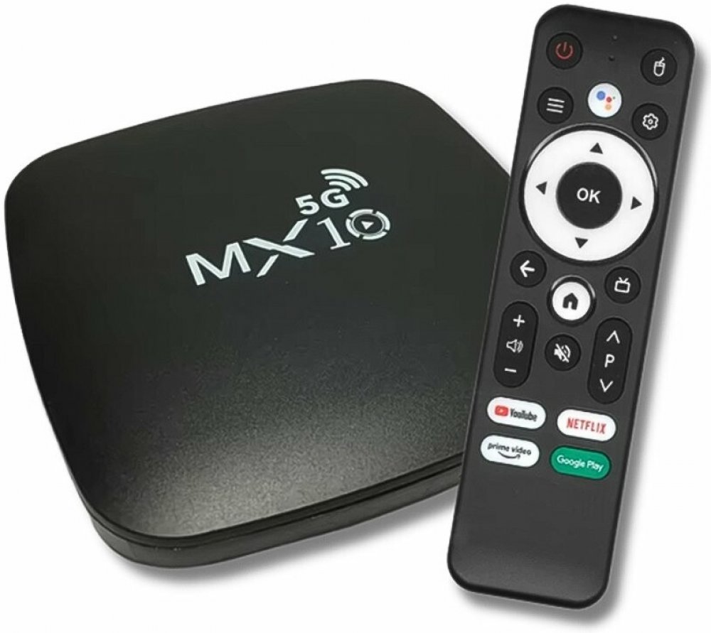 MX10 Smart TV Box 5G je kompaktní multimediální centrum, které promění váš televizor v chytrou TV. Díky operačnímu systému Android umožňuje přístup k oblíbeným streamovacím aplikacím, přehrávání filmů ve vysokém rozlišení 4K Ultra HD, instalaci aplikací z Google Play a pohodlné prohlížení internetu.Zařízení podporuje rychlé Wi-Fi připojení (2,4 GHz / 5 GHz) i kabelové připojení přes LAN port. Výkonný procesor zajišťuje plynulý chod aplikací, přehrávání videa bez sekání a rychlé reakce systému. Kompaktní a elegantní design se snadno začlení do jakéhokoli interiéru.Ideální řešení pro sledování YouTube, Netflixu, IPTV, HBO Max, Kodi a dalších multimediálních aplikací. Specifikace: Model: MX10Operační systém: AndroidRozlišení: až 4K Ultra HD (3840 × 2160)Procesor: Quad-CorePaměť RAM: 4 GBInterní úložiště: 32 GBWi-Fi: 2,4 GHz + 5 GHzBluetooth: AnoLAN: RJ45 Ethernet portHDMI: AnoUSB porty: 2× USBNapájení: DC 5VPodpora formátů: H.265, H.264, MP4, MKV, AVI a další