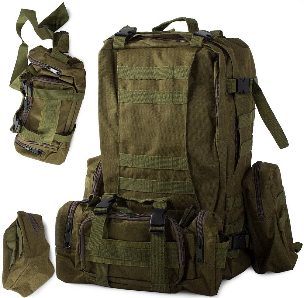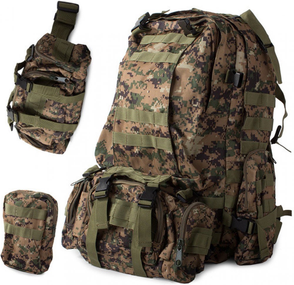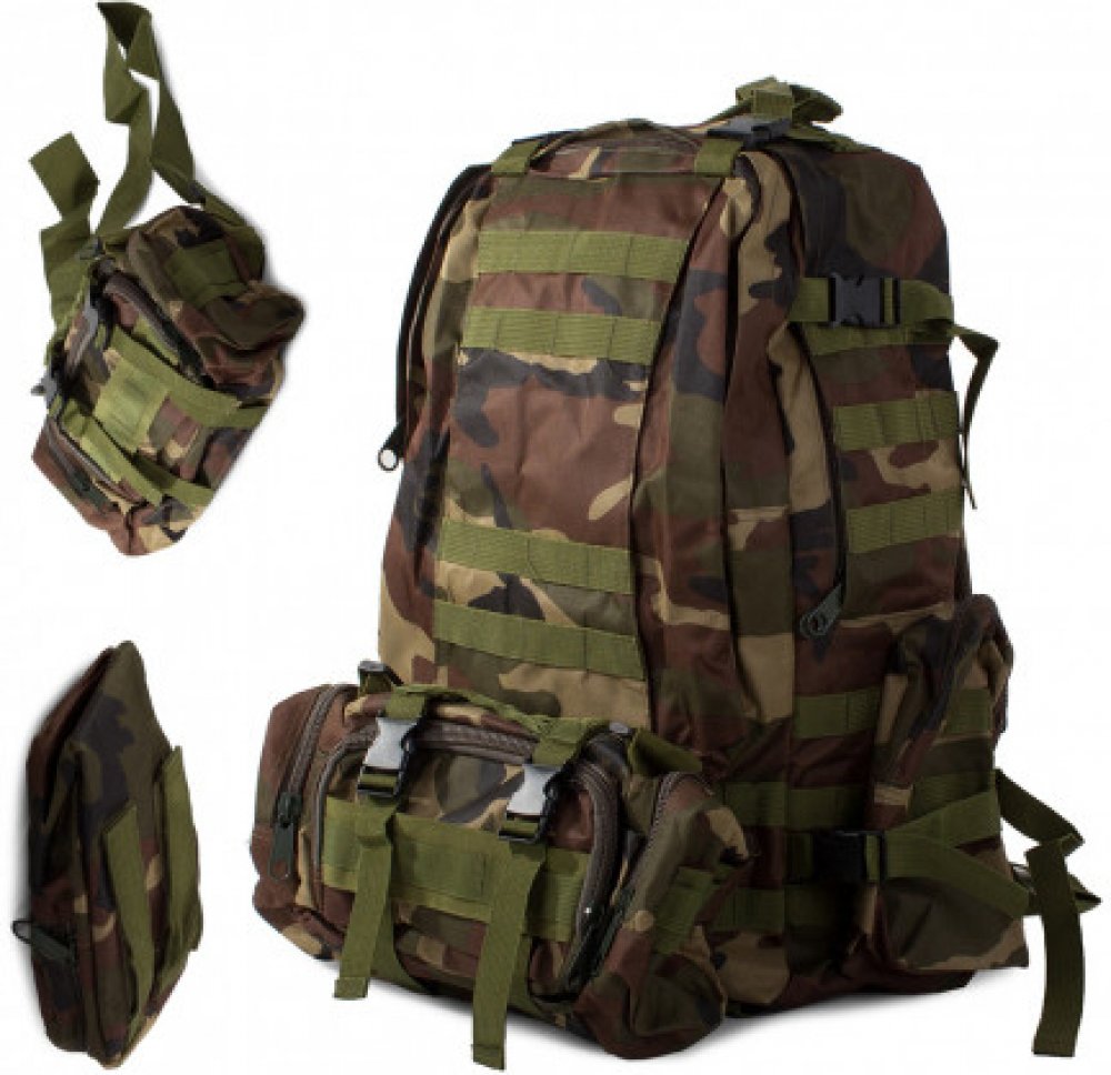 MILITARY SURVIVAL MILITARY TACTICAL PACK 48.5LTuristický batoh s vojenskou tématikou se bude líbit horolezcům i milovníkům vojenství.Materiál batohu je nepromokavý, takže se můžete vydat na túru i za nepříznivého počasí. Je také velmi pevný a odolný vůči různým oděrkám.Batoh se skládá z jedné velké komory, ve které je další přihrádka a jedné komory, ve které je síťovaná přihrádka. Na bocích jsou dvě připojitelné ledvinky, které lze v případě potřeby odpojit. Uprostřed je také připojitelná větší ledvinka, kterou lze odpojit a nosit jako samostatnou ledvinku. Skládá se ze 4 menších přihrádek - dvou bočních a dvou prostředních. Je ideální pro různé drobnější pomůcky a doklady. Můžete ji připevnit přímo k opasku kalhot nebo ji nosit pomocí přiloženého popruhu jako běžnou ledvinku.Batoh má nastavitelné příchytky v systému MOLLE, které umožňují přidat do batohu další kapsy a moduly. Kromě toho je vybaven hrudním a bederním pásem - umožňuje odlehčení páteře a ramen během dlouhých výprav. Nastavitelné popruhy jsou užitečné zejména při přenášení předmětů, jako jsou bundy, stany, karimatky. Bederní pás má pevnou přezku a možnost nastavení délky. Po zapnutí pásu je batoh velmi stabilní, při nošení se nenaklání do stran.Multifunkční pro různé fyzické aktivity, např:✅ Turistika✅ Záchrana✅ Dobrodružství přežití✅ Jízda na kole✅ Horolezectví