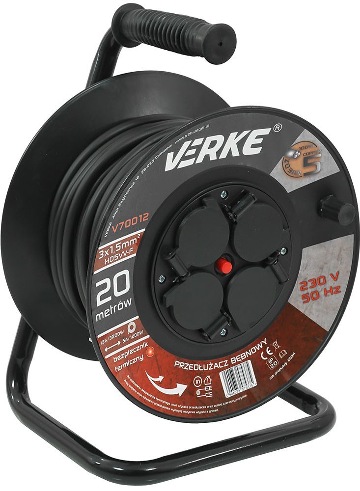 Prodlužovací Kabel Na Bubnu Silný Stavební Navíječ 3x1,5mm 20m 4 Zásuvky V70012
