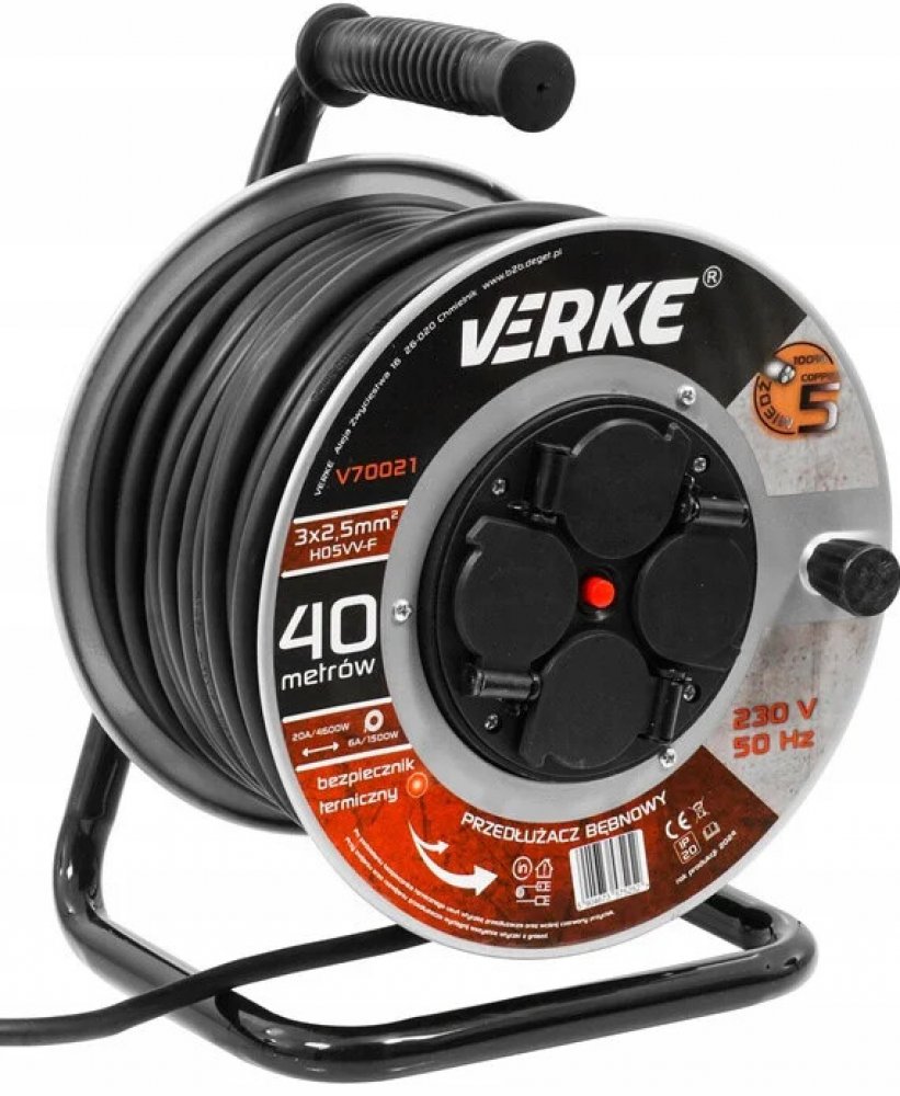 Vysoce kvalitní prodlužovací kabel na bubnu s délkou 40 m a 4 zásuvkami. Kabel je vyroben z měděných vodičů se třemi žilami o průřezu 2,5 mm², což umožňuje připojení až čtyř zařízení současně. Tento kabel je ideální pro použití na stavbě nebo v dílně. Vodiče jsou pokryty polvinylovou izolací, která je vysoce odolná vůči mechanickému poškození, povětrnostním vlivům a chemickým látkám. Prodlužovací ...
