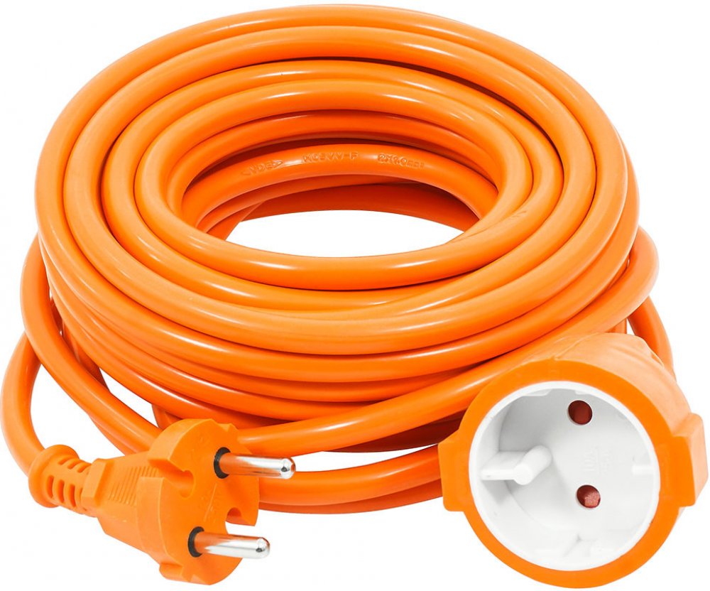 Prodlužovací Kabel o délce 20 m s silnou izolací oranžové barvy. Užitečný v domě v garáži i na zahradě. Maximální výkon připojeného zařízení je 2500 W.
