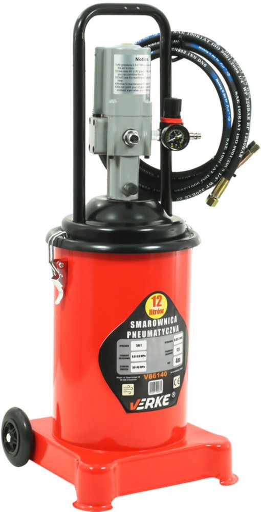 Profesionální pneumatická maznice značky Verke je zařízení určené pro tlakové mazání mechanických prvků jako jsou hřídele, čepy, ložiska, klouby apod. Vyrobena je z ocelového válce s kapacitou 12 l, což umožňuje nepřerušovanou a efektivní práci. Celé zařízení je zhotoveno z vysoce kvalitních materiálů odolných vůči dlouhodobému působení maziv a olejů. Všechny těsnění a ventily jsou zpracovány s ne...