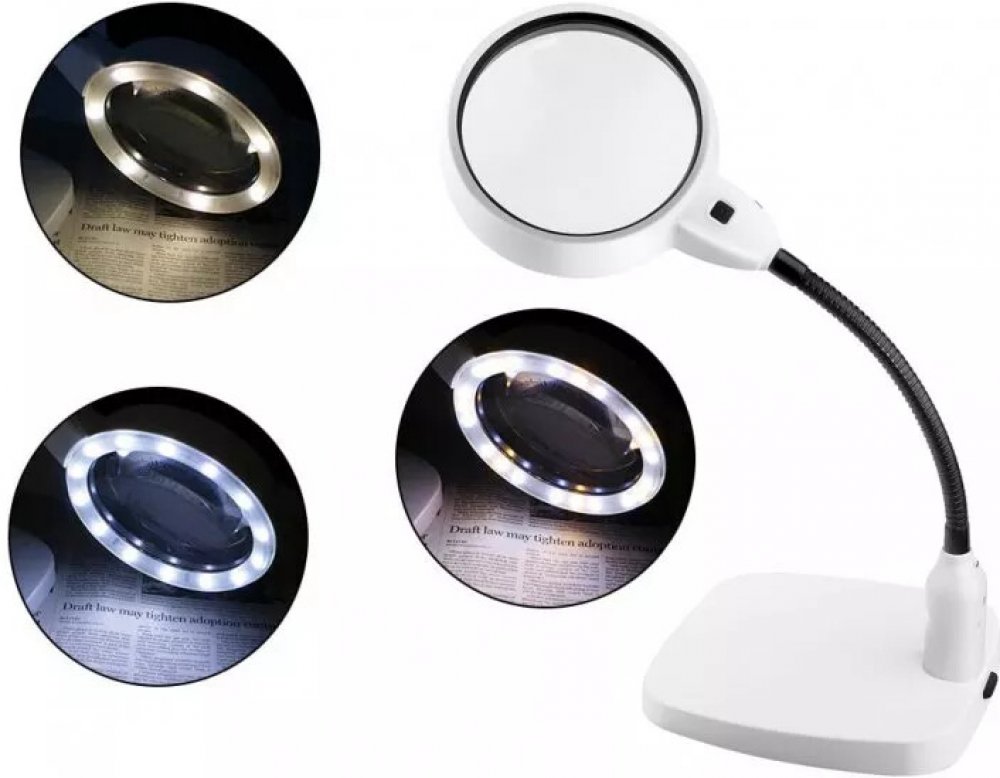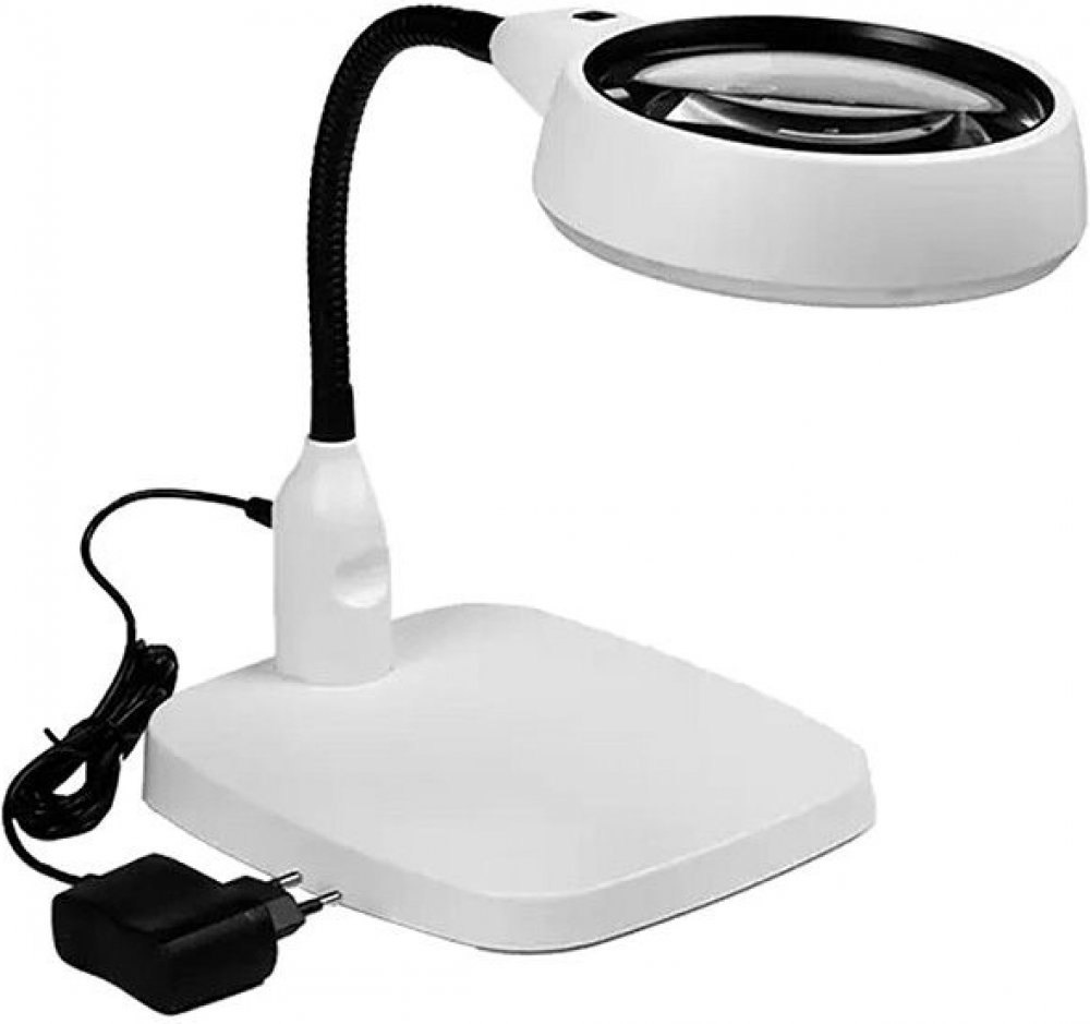 Profesionální stolní lupa s LED diodami je ideálním zařízením pro kutily. Využít jej mohou klenotníci, numismatici, servisní technici elektroniky, hodináři, k výrobě manikúry atd. Čočka je umístěna na pružném rameni, díky kterému se dá přizpůsobit vašim potřebám. Disponuje také 21 LED diodami, díky kterým je obraz velmi jasný a čitelný. Klíčové vlastnosti Lupy Verk stolní lupaLupa má 3 režimy svícení studený, teplý a neutrálníPro amatéry i profesionályNastavitelné ramenoZvětšení 10×, LED diody, 21 režimů svíceníNapájení síť 110 V - 240 V, 50HzDélka napájecího kabelu cca 150 cmVypínač ON/OFFProtiskluzové nožičkyBarva:BíláCelková výška:48 cm, základna 18,5 × 16,5 cmPrůměr čočky:11,5 cm