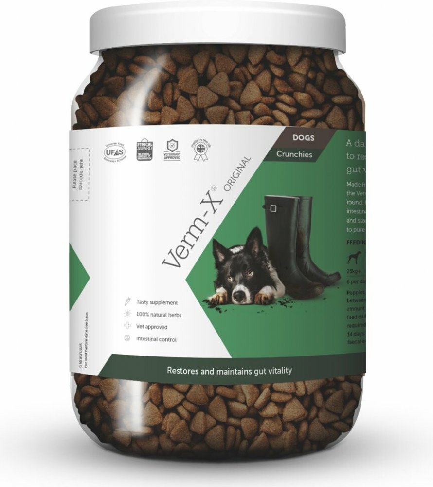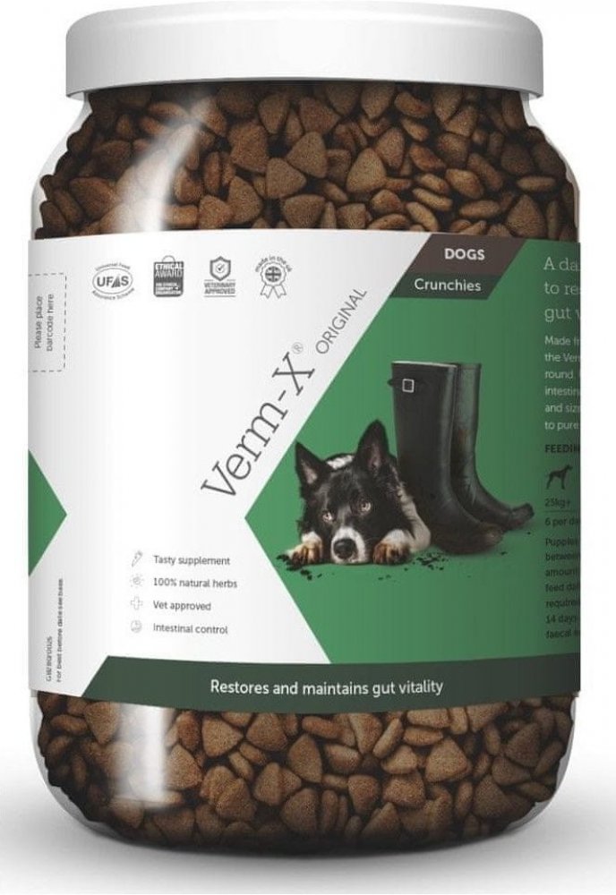 Byliny používané ve Verm-X® byly vybrány především pro svůj efektivní účinek, ale nabízejí další skvělé a důležité přínosy pro zdraví zvířete. Obsahují komplex vitamínů, minerálů a stopových přírodních látek, které zlepšují kondici a zdraví zvířete a podporují detoxikaci organismu. Pravidelné podávání Verm-X® pomůže psům připravit ve svém organismu autoimunitní systém proti vnitřním parazitům a parazitologickým onemocněním. Verm-X® je dostupný ve formě denních granulí, chutná jako tradiční pamlsek a je vhodný pro krmení během celého roku.