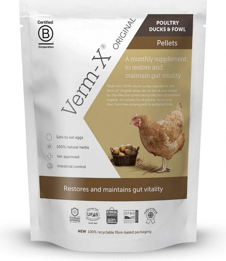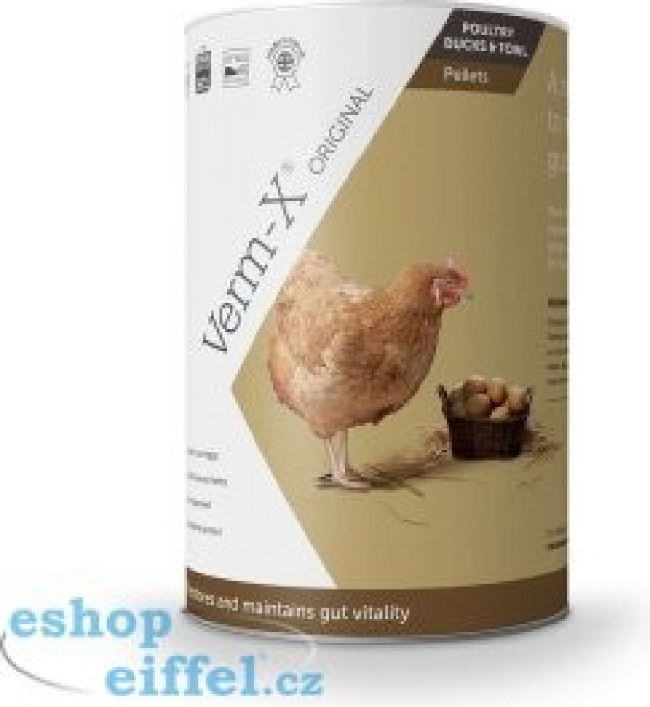 Verm-X® pelety pro drůbež proti střevním parazitům byly vyvinuty tak, aby je chovatelé mohli přidávat drůbeži v menším množství do krmiva. Dávkuje se v měsíčních intervalech v rozmezí třech po sobě následujících dnech. Pelety mohou být podávány spolu s pravidelnými dávkami potravy. Výhodou 100% přírodního složení je, že chovatelé mohou konzumovat vejce v průběhu dávkování a nevystavují se žádnému ...