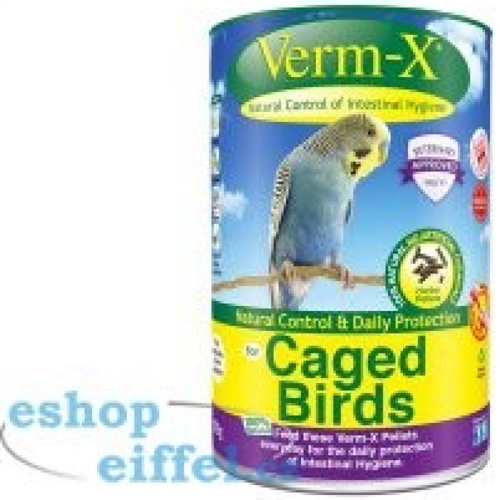 Verm-X® peletky jsou pro ptáky jako jsou kanárci, andulky a papoušky chované buď v interiéru nebo venku. Verm-X® peletky pro ptáky jsou zaměřeny na zlepšení jejich celkového zdraví. Zdravý trávicí systém, který se nachází ve střevním traktu je velmi důležitý a představuje 70% imunitního systému. Střevní problémy u ptáků chovaných v interiéru představují hrozbu pro vašeho domácího mazlíčka. Střevní problémy může být obtížné odhalit, doporučuje se vyšetření pomocí krevních testů provedených veterinárním lékařem.