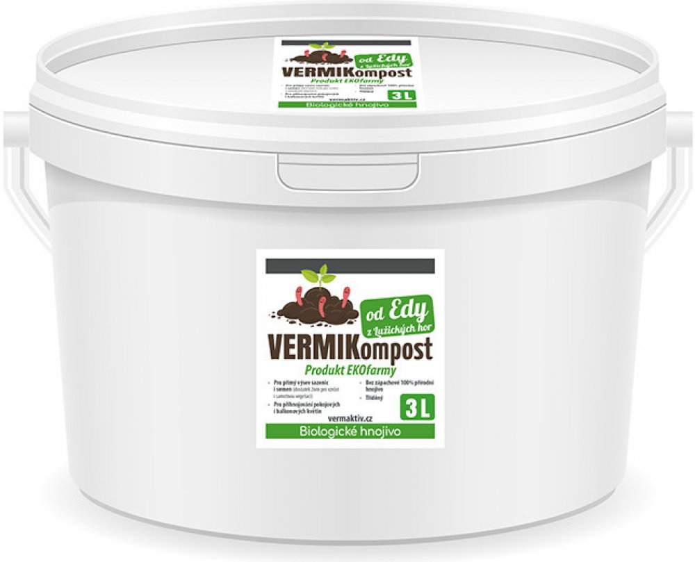 VERMIKompost od Edy je jedinečné vysoce účinné přírodní organické hnojivo s jemnou strukturou vyrobené za pomoci žížal druhu Eisenia a Dendrobena. Díky činnosti žížal vzniká ideální a jedinečné čisté přírodní hnojivo, stimulátor růstu, které je plné cenných humusových látek, enzymů a růstových hormonů. Obsahuje komplex základních živin a stopových prvků, enzymů, přírodních antibiotik, hormonů, pů...