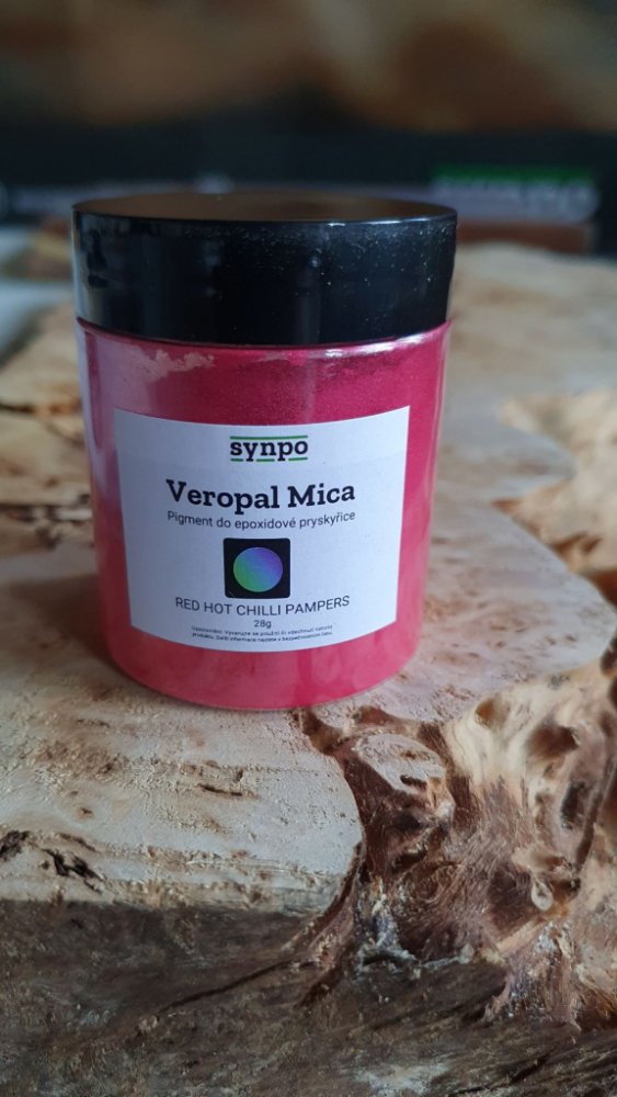 VEROPAL MICA pigment RED HOT CHILLI PAPMERS je okouzlující metalický pigment se sytou červenou barvou a jemnými metalickými odlesky. Díky malým mikročásticím slídy o velikosti 10-60 mikrometrů se dobře udržuje ve vznosu, takže méně klesá při odlévání ke dnu. To potom umožňuje vytvářet metalické, perleťové, duhové a jiné efekty a díky tomu si získává oblibu jak u profesionálů, tak i kutilů pro epox...