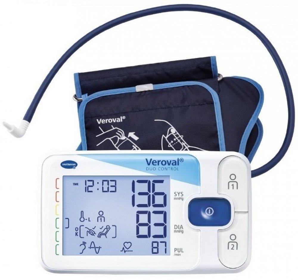 Pažní tlakoměr HARTMANN Veroval duo s patentovanou metodou měření Duo Sensor umožňuje dosáhnout přesných výsledků. Vhodný i pro měření pacientů se srdeční arytmií. Pro stejně kvalitní měření jako při návštěvě lékaře. Nabízí spolehlivý a rychlý způsob měření krevního tlaku, využívá oscilometrickou a poslechovou metodu měření tlaku Samozřejmostí je kvalitní zpracování přístroje, na který výrobce poskytuje nadstandardní, 5letou záruku. V dárkovém balení najdete 2 velikosti pažní manžety. Měření je tedy nadmíru pohodlné. Výsledky se zobrazí na přehledném displeji s podsvícením.