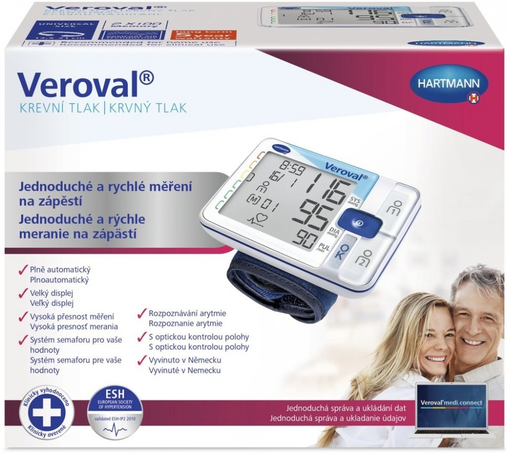 Tlakoměry Veroval® dodává na trh značka HARTMANN, na jejíž zdravotní pomůcky se již přes 200 let spoléhají lidé vevíce než 100 zemích světa. Značka HARTMANN svým tlakoměrům věří, a proto vám na zápěstní tlakoměr Veroval® dává nadstandardní 5letou záruku.