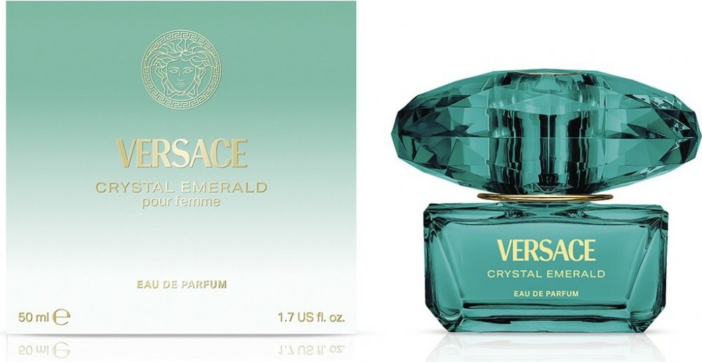 Versace 50 ml dámské parfémované vody květinové univerzální s celodenní výdrží (4-8h) romantické a smyslné Crystal Emerald 2025 z Itálie mainstreamové bergamot, broskev, růžový pepř jasmín, malinový sorbet, poupata růží bílé pižmo, kadidlo, tonka boby se střední projekcí jarní univerzální s bergamotem, s broskví, s jasmínem, s pižmem Euroitalia klasické TSA kompatibilní (≤100ml) rozprašovač standardní