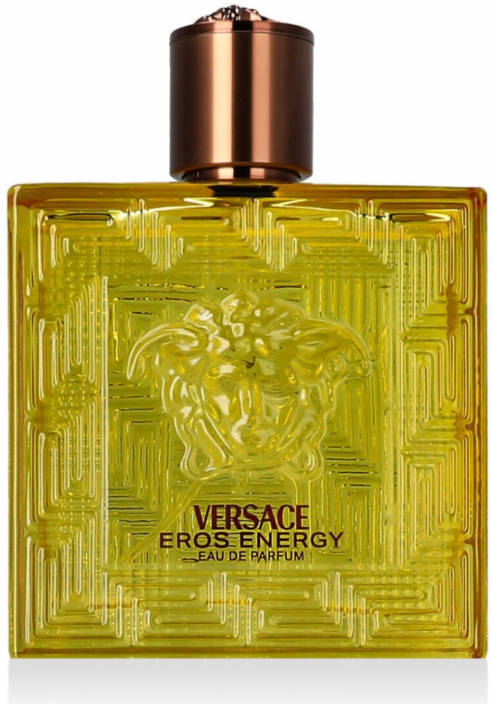 Versace 100 ml pánské parfémované vody citrusové svěží a energické Eros Energy 2024 z Itálie mainstreamové bergamot, červený pomeranč, limetka, citron, grapefruit, mandarinka růžové koření, čierne ríbezle, bílá ambra pačuli, pižmo, dubový mech letní s italskými citrusy Versace testery TSA kompatibilní (≤100ml) rozprašovač standardní
