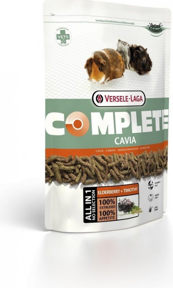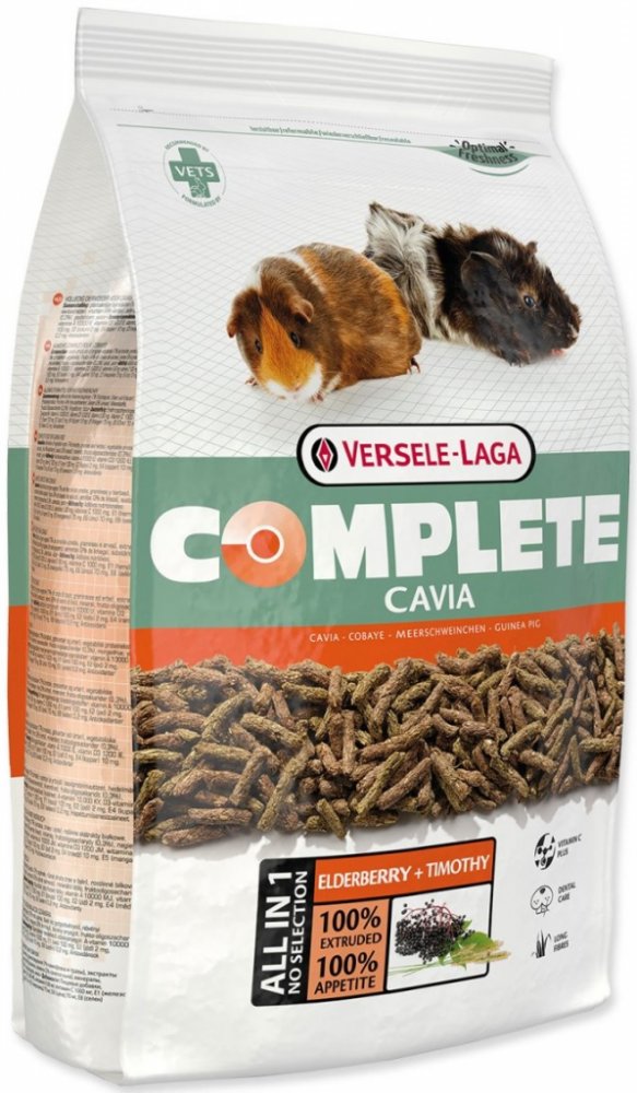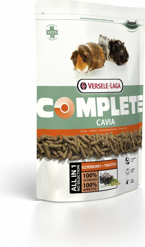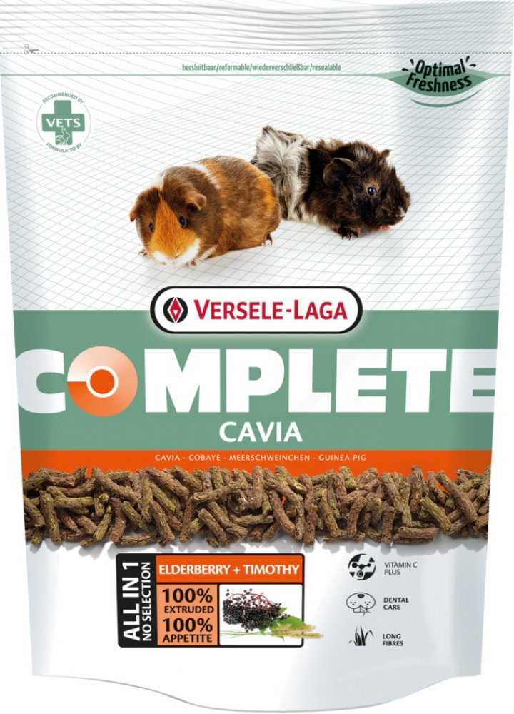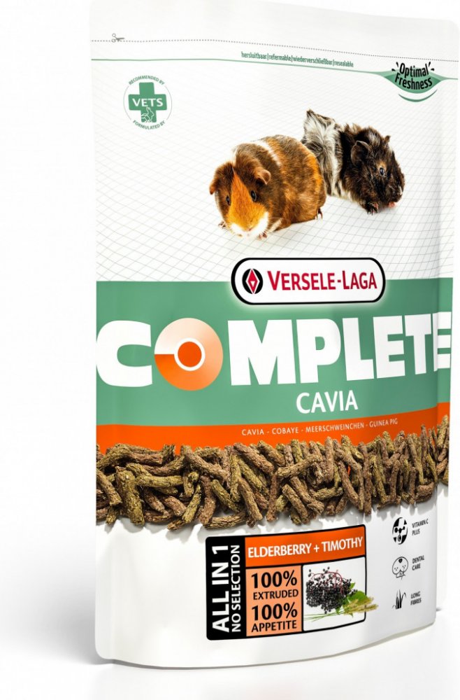 Kompletní a chutné krmivo z extrudovaných pelet pro morčata. Kompletní krmivo pro morčata. Krmivo Cavia Complete zajišťuje tyto funkce: * Dental Care (péče o chrup) U morčat se velmi často objevují problémy s chrupem. Obvykle se jedná o přímý důsledek nevhodného krmení, které nedostatečně přispívá k přirozenému obrusu a souvislému růstu zubů. Začleněním neporušených dlouhých kousků vlákniny s velk...