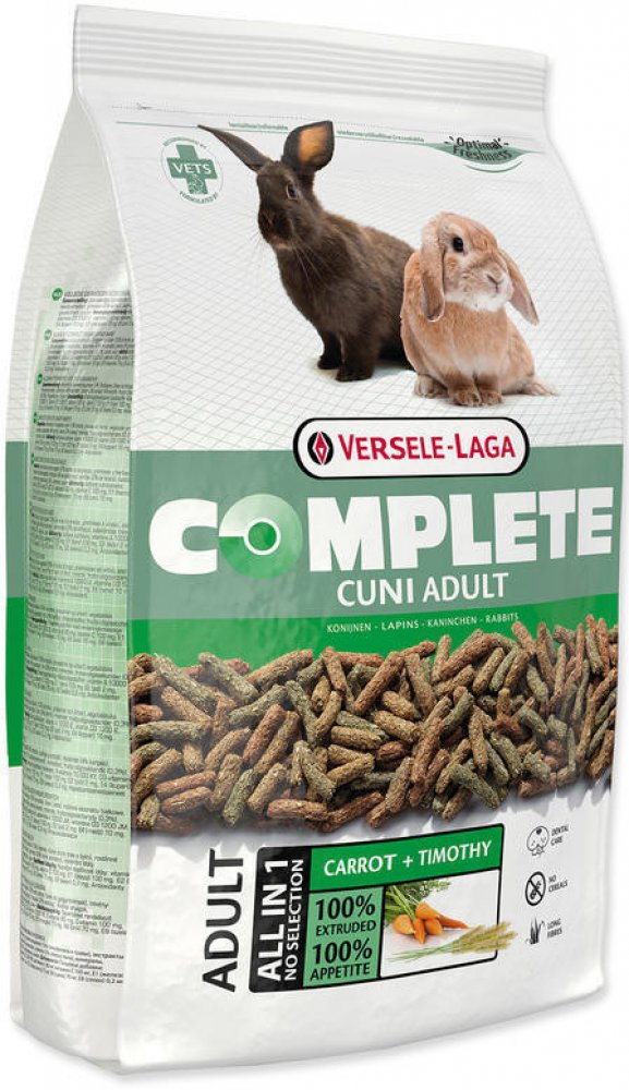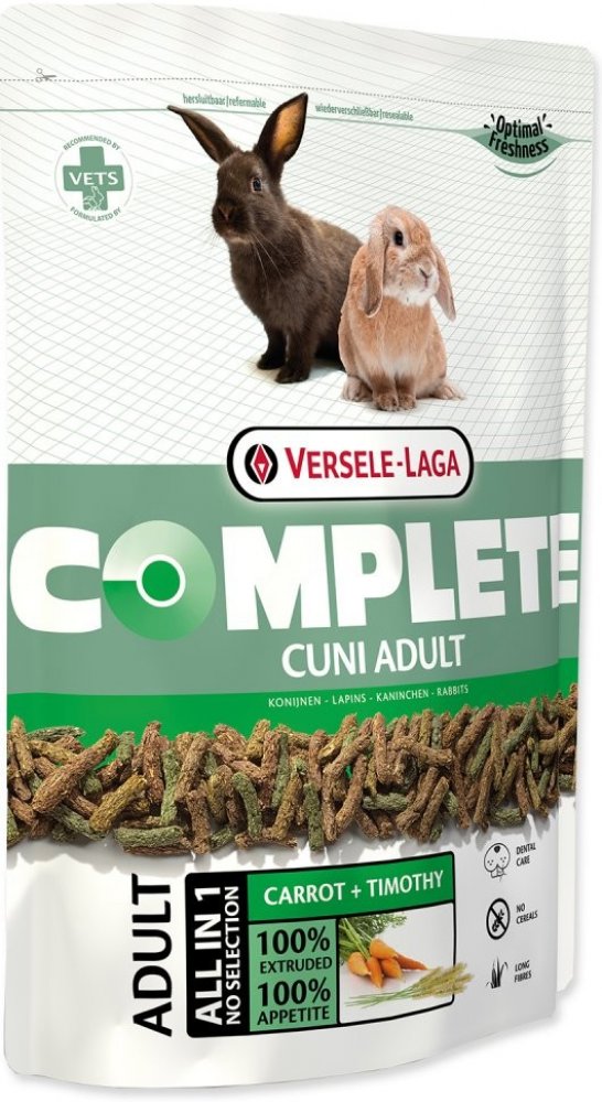 (Zakrslí) králíci jsou od přírody býložravci, kteří potřebují stravu s dostatečně vysokým obsahem vlákniny a nízkým obsahem škrobu. Cuni Complete obsahuje 20% surové vlákniny. Unikátní proces zpracování zajišťuje, že krmiva Complete obsahují pouze neporušené dlouhé kousky vlákniny bohaté na křemičitany. Tedy přesně takové, které se nacházejí v přirozené stravě v přírodě. Tyto dlouhé kousky vlákniny daleko lépe podporují a zlepšují funkci střev a zubů než rozdrcená či jinak rozbitá vláknina ve standardních krmivech pro hlodavce.