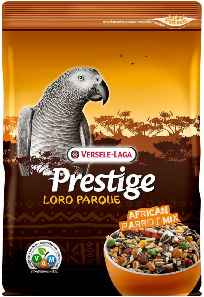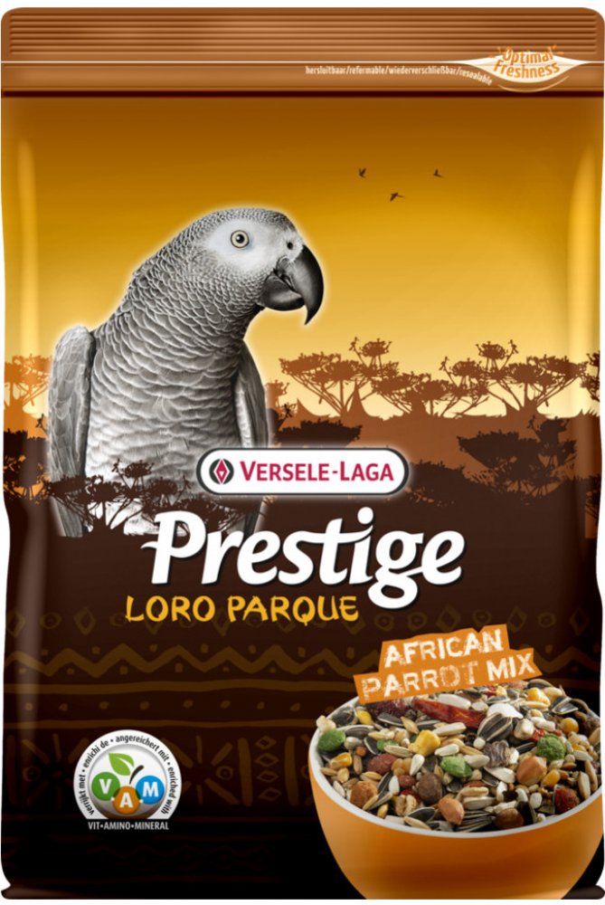 Tato speciální směs semen má pestré a vyvážené složení, speciálně přizpůsobené specifickým výživovým požadavkům velkých afrických papoušků. Obsahuje vitamíny, aminokyseliny, minerální látky a přídavek florastimulu pro optimální kondici a trávení, semínek chia, která dodávají omega-3 mastné kyseliny a ústřicových lastur pro správné fungování svalnatého žaludku ptáků a správný poměr vápníku a fosforu.