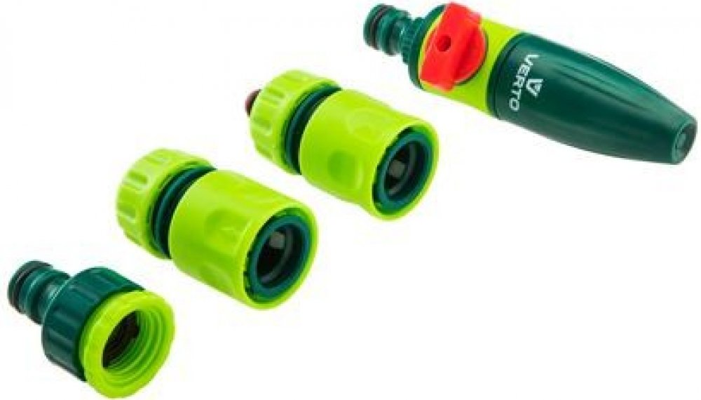 Zavlažovací sada s přímým postřikovačem, armaturou, adaptérem na vodovodní kohoutek, 1/2” 15G711 VERTO je sada čtyř praktických dílů, které jsou nepostradatelné v každém zavlažovacím systému. Příslušenství je kompatibilní s ½” zahradními hadicemi. Výrobek je vyroben z odolného plastu, který vydrží mnoho sezón.