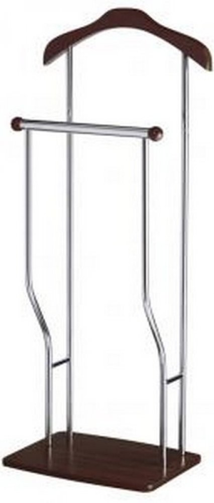 Nabízíme němého sluhu GREG v provedení chrom s dřevěnými doplňky v barvě wenge. Němý sluha je vybaven ramínkem na šaty a stojanem na kalhoty. Jeho stabilitu zajišťuje dřevěný podstavec, který může sloužit na uložení batohu nebo tašky. Je vhodný do ložnice, předsíně, dětského pokoje..., kde nám bude věrným pomocníkem při odkládaní různých druhů oblečení a tím nám udrží v domácnosti pořádek.