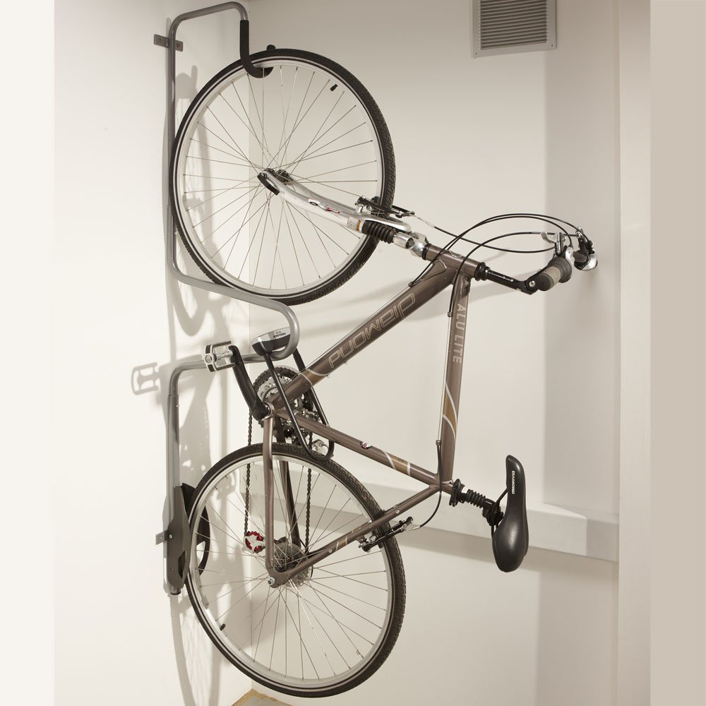 speciální konstrukce věšáku pro jízdní kolo umožňuje uzamknutí přes kolo i rám jízdního kola výbornou stabilitu uložení jízdního kola zajištuje hák pro zavěšení v kombinaci se spodním držákem kola jízdní kolo se do věšáku zavěšuje za ráfek předního kola na hák, který je opatřen ochranným gumovým návlekem zabraňujícím poškození ráfku věšák pro jízdní kolo umožňuje dvě nastavení vzdálenosti mezi kol...