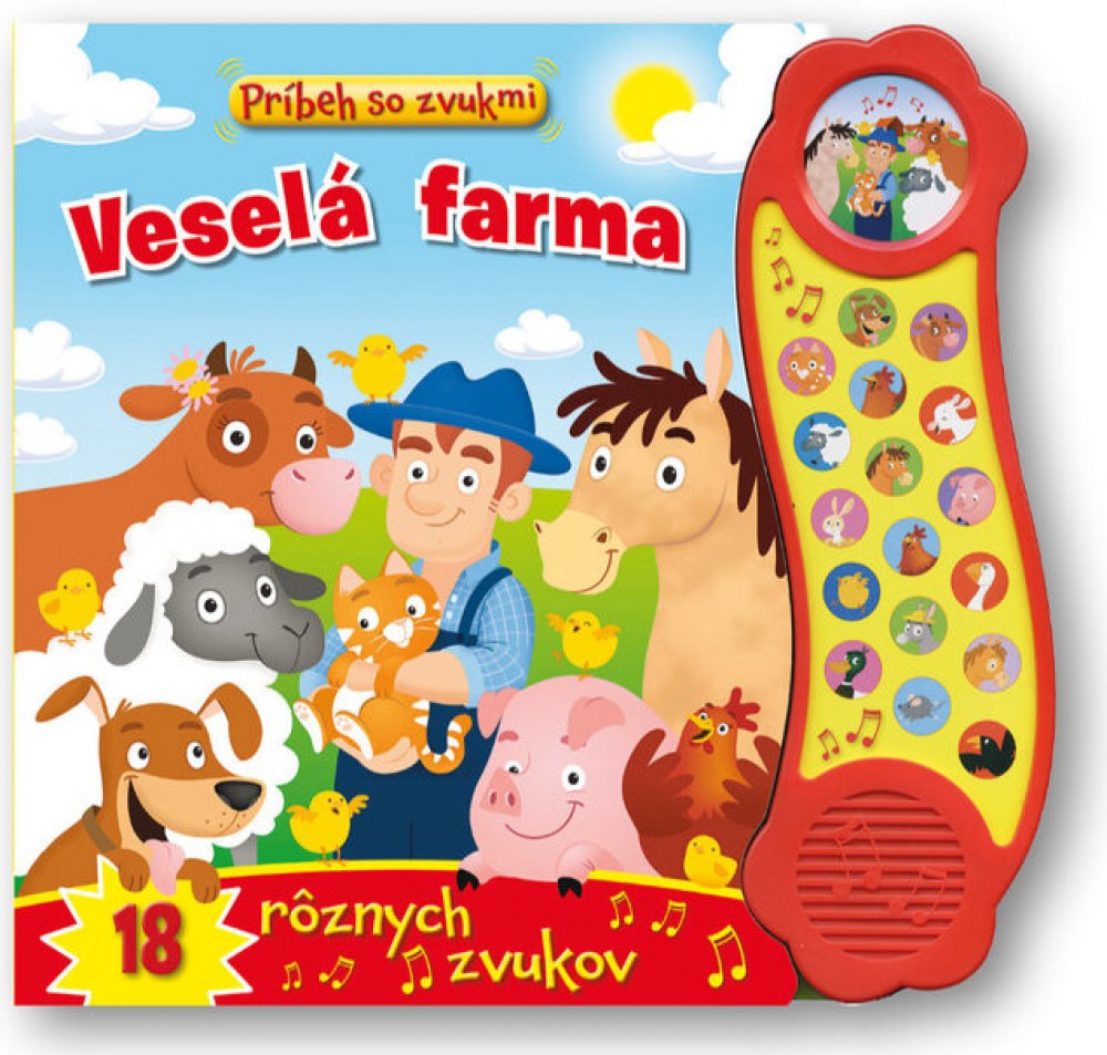 Popis : Štefan, vstávaj! Pes vonku šteká. A fúra práce na teba čaká ... Rýchlo, je čas navštíviť farmu strýka Štefana a lepšie spoznať jeho zvieratká. Vďaka celostránkovým farebným ilustráciám a veselým veršom sa deti razom prenesú na farmu a zoznámia sa s tamojším životom. A 18 sprievodných zvukov celú farmu skvelo oživia! Treba len stlačiť správny obrázok a už počujú koníka, mačku, somárika a veľa ďalších zvieracích kamarátov. Vaše deti si predčítanie krátkeho veselého rozprávania spoločne so stláčaním tlačidiel zvukov určite obľúbia! Stačí len otvoriť knižku - ďalší deň na farme sa práve začína!Druh sortimentu : Kniha, Název : Veselá farma, Jazyk : Slovenština, Počet stran : 8