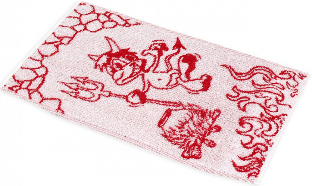 Dětský žakárový ručník ČERT. Velmi oblíbený motiv u malých uličníků. Ručníček je v provedení pozitiv a negativ. Na jedné straně ve vždy dominantní barvou bílou, na druhé pak naopak.