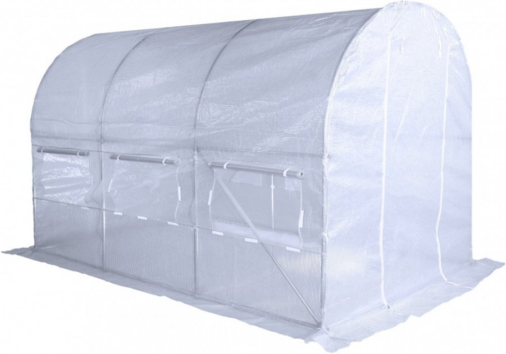 Zahradní fóliovník VESPAGARDEN bílý 2x3,5m (7m2) je vyroben z vysoce kvalitních materiálů. Ocelová pozinkovaná konstrukce je doplněna plachtou z polyethylénu s UV filtrem UV-4. Zapuštěná polypropylenová síťka zvyšuje pevnost plachty a zabraňuje jejímu trhání. Boční stěny fóliovníku mají okna opatřená moskytiérou, která chrání před pronikáním škůdců a hmyzu. Okna zároveň slouží k ventilaci a lepší regulaci klimatu uvnitř fóliovníku. Vstup je dostatečně široký a snadno uzavíratelný pomocí zipů. Výška fóliovníku umožňuje komfortní provádění prací spojených s péčí o rostliny.