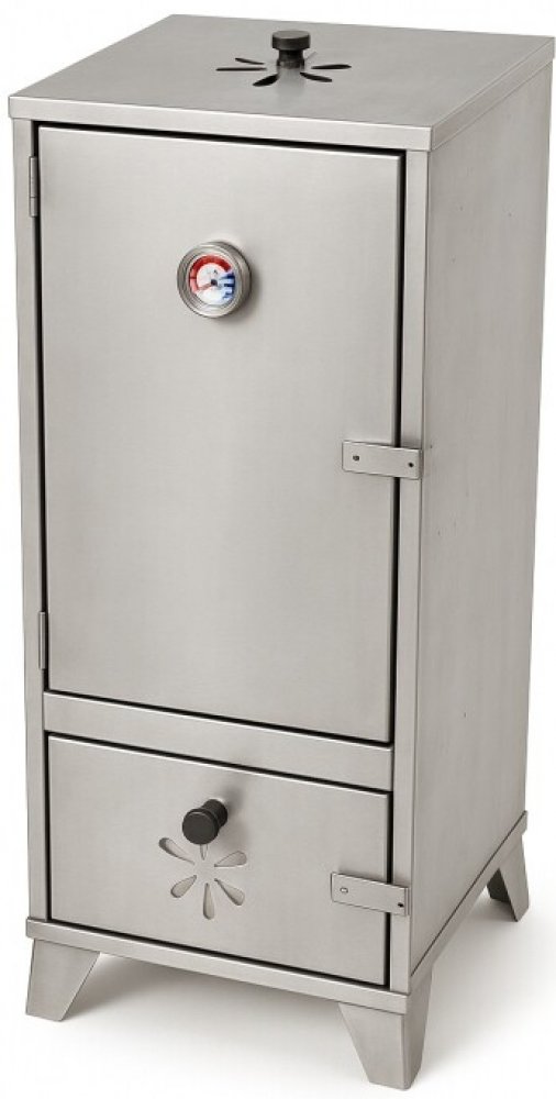 Prostorná udírna z kvalitní nerezové oceli pro úpravu pokrmů jako je maso, ryby, sýry atd. Uzení teplým i studeným kouřem.