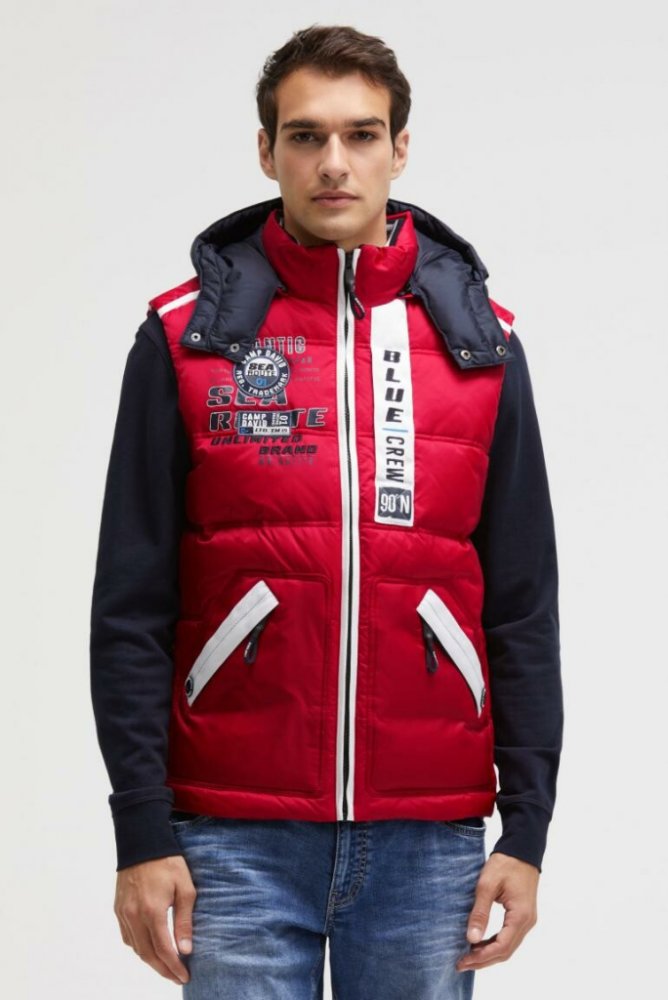 Tato prošívaná vesta od značky CAMP DAVID vám zaručí stylový vzhled. Na přední straně se vyznačuje poutavým potiskem loga a páskou. Mezi praktické prvky patří kapsy na zip, odnímatelná kapuce a dvě vnitřní kapsy se zapínáním na suchý zip. Na podšívce je velký potisk loga. Materiál: 100% polyamid, podšívka: 100% polyamid, výplň: 100% polyester