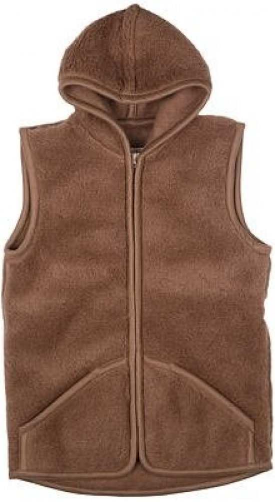 Kapuce chrání krk i hlavu, což přispívá k celkovému pocitu tepla, protože nechráněná hlava může v chladném počasí teplo snadno ztrácet. Díky termoregulačním vlastnostem Merino vlna odvádí vlhkost a udržuje optimální teplotu. Vesta má i praktické hluboké kapsy, ideální na všechny drobnosti. Vlna může zpočátku nést jemnou vůni oveček díky přírodnímu lanolinu, který je součástí vláken, ale tato vůně časem vyprchá po vyvětrání na čerstvém vzduchu. Vlněná vlákna mohou občas plstnatět, což je u přírodních materiálů běžný proces. Pro maximální pohodlí doporučujeme nosit vestu přes tričko nebo dlouhý rukáv, aby vlna nekousala. Materiál: 90 % ovčí vlna Merino, 10 % velbloudí vlna