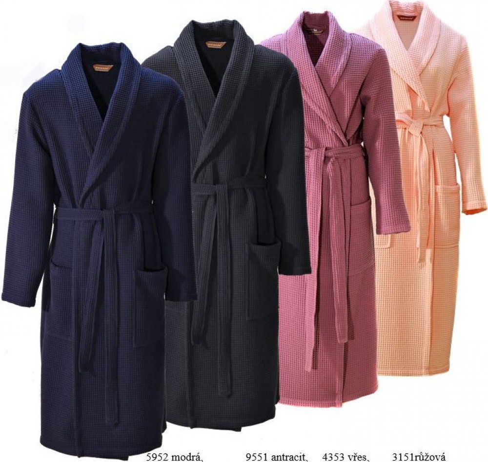 Lehký čistě bavlněný župan Esbo v unisex provedení se šálovým límcem, dvěma kapsami, v klasické délce. materiál: 100% bavlna vafle růžová barva - symbol něhy, jemnosti a romantiky, svěží a mladistvá - růžová sluší každé ženě v každém věku