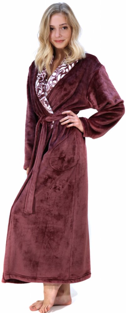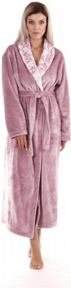 Dámský hebký dlouhý župan Vestis Flora v nádherné fialkové barvě s šálovým límcem.