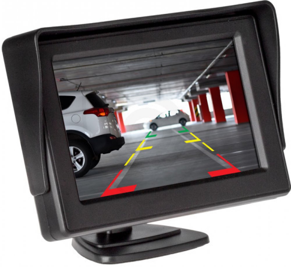 Standardní stojanový monitor do auta s úhlopříčkou 4,3″ má kvalitní displej a video vstupy pro 2 couvací kamery nebo DVD přehrávač. Monitor můžete v autě umístit na palubní desku pomocí stojanu s pevnou oboustrannou páskou nebo na sklo pomocí stojanu s přísavkou. Monitor má clonu proti slunci a pohyblivý kloub, pomocí kterého si jej můžete pohodlně nastavit do požadovaného úhlu. Po zařazení zpáteč...