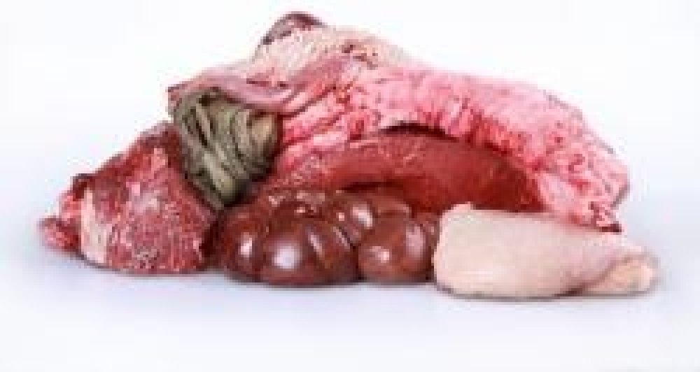- 35 % hovězí droby (játra, ledviny, srdce, vemeno)