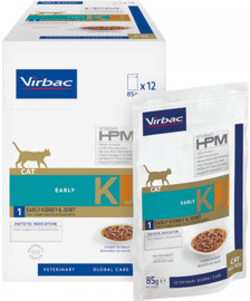 Veterinární dieta VETERINARY HPM EARLY KIDNEY & JOINT pro kočky je dietní krmivo na podporu funkce ledvin při ledvinové nedostatečnosti ve stadiu I (klasifikace IRIS) a podporu kloubů při osteoartritidě