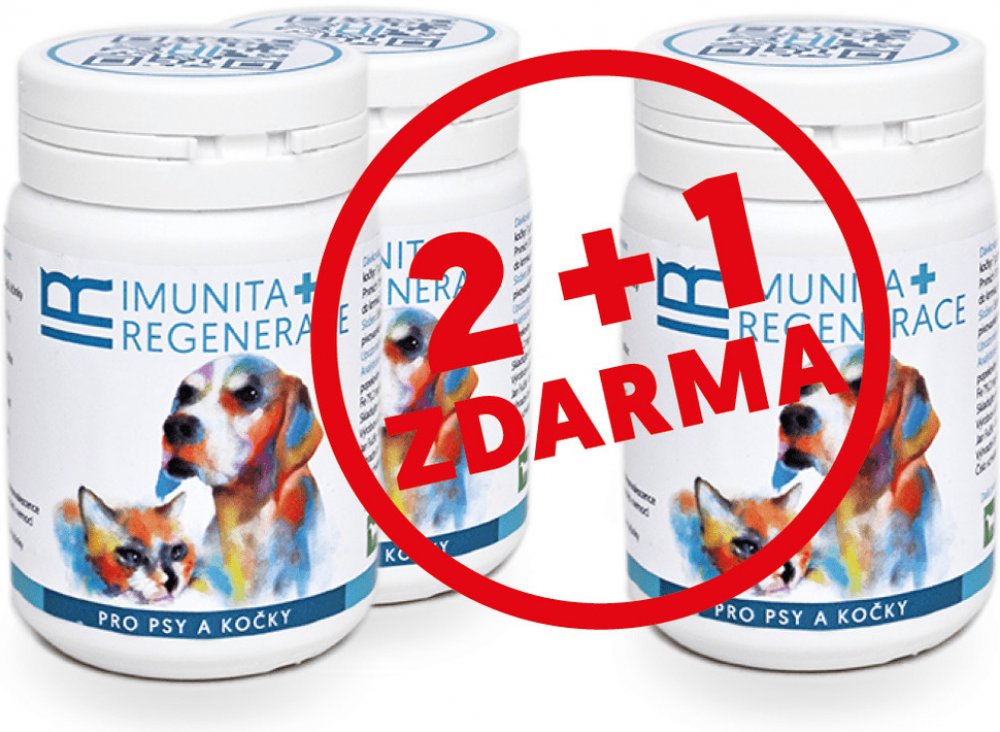 IR obsahuje specifický druh fermentačně křehčených kvasnic, fermentované mladé výhonky pšenice a speciální druh spiruliny (sladkovodní řasa), která mj. přispívá k navození správné acidobazicity organismu. Jednotlivé varianty IR Imunita a Regenerace (pro psy a kočky, pro koně, pro myši a potkany) se navzájem liší dle typu v koncentracích, event. v přidání dalších bylinných složek (u koní).