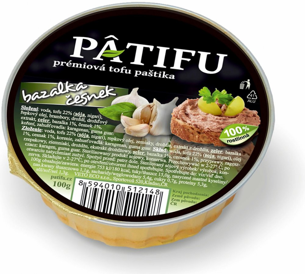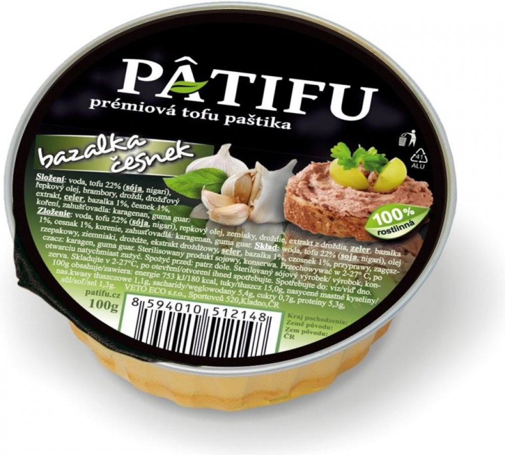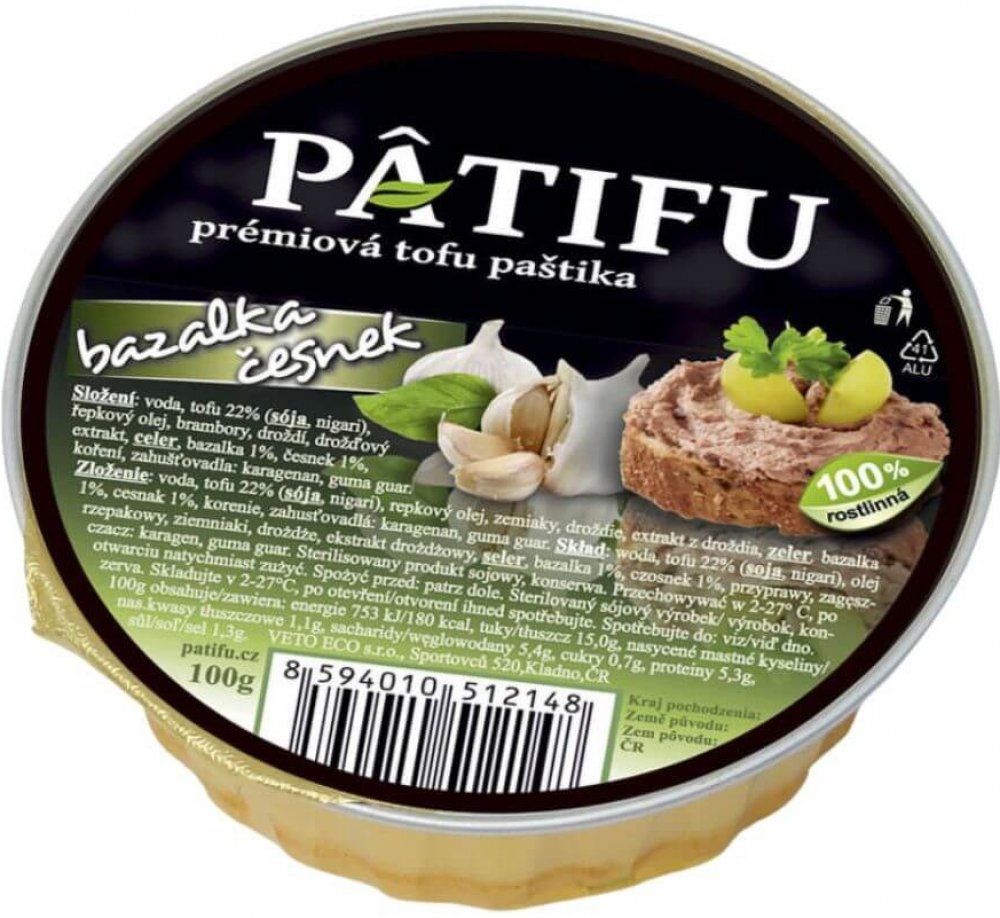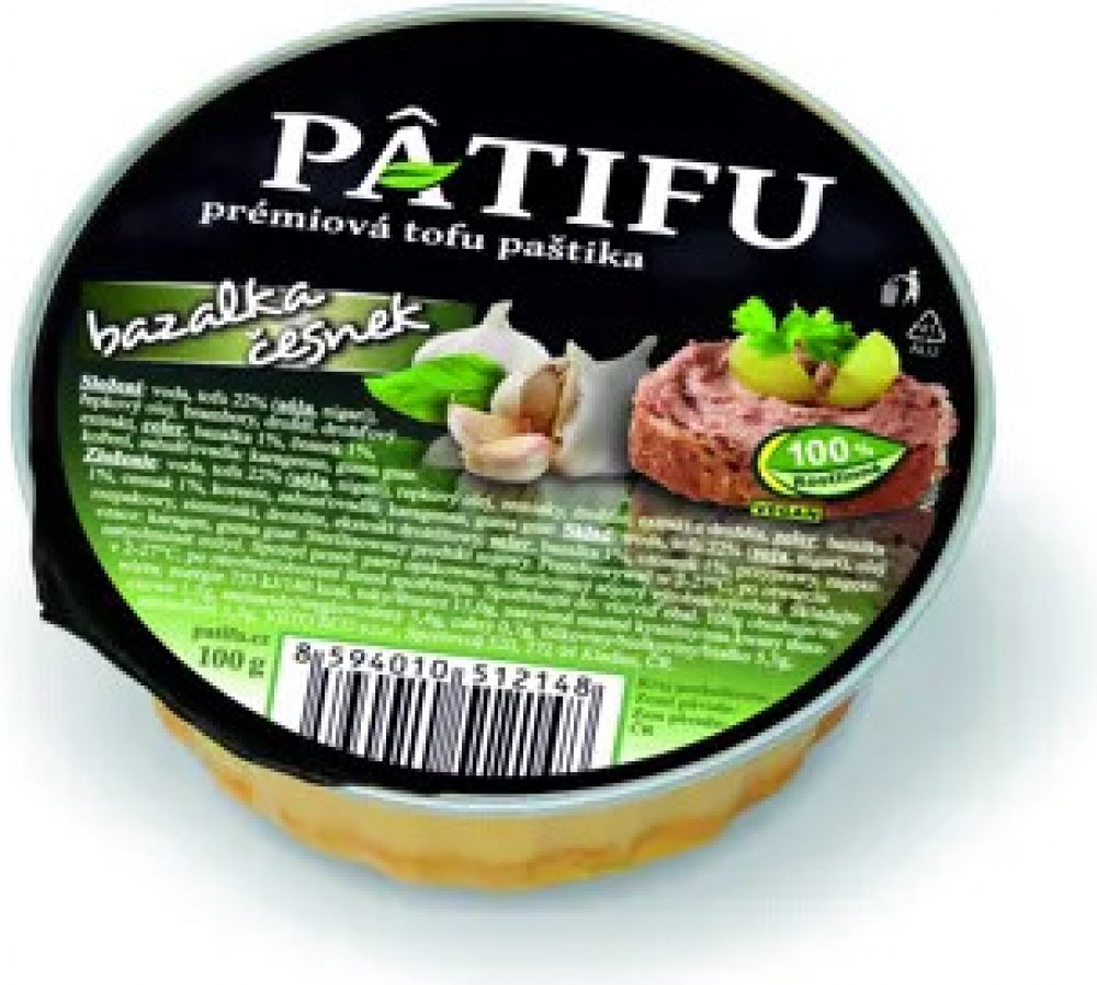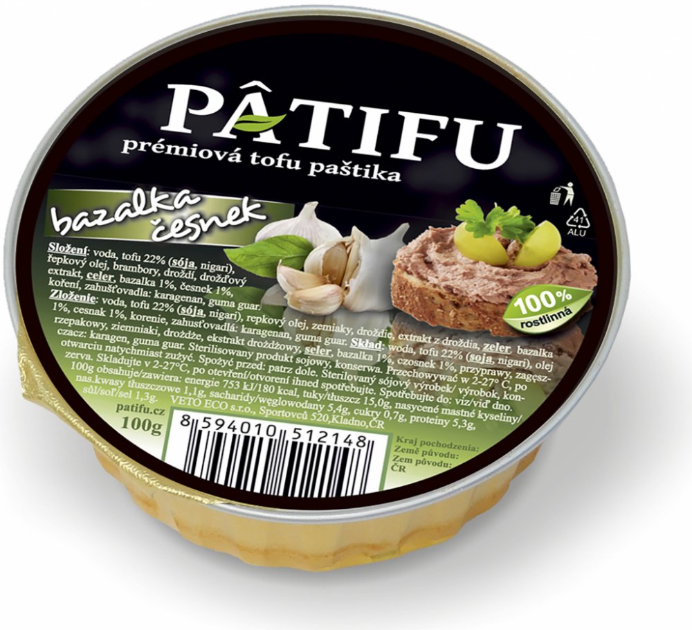 Kromě tofu jsou v produktu také kvalitní brambory pro pastózní strukturu a tuzemský řepkový olej. Dále obsahuje celer, česnek, bazalku, smaženou cibulku a droždí pro jemnou chuť. Produkt vydrží bez chlazení dlouho dobu trvanlivý, takže ani při pokojové teplotě se na něm nevytváří žádná vrstva tekutého tuku. PATIFU paštika se vyrábí v mnoha různých variacích a vy si můžete vybrat dle chutě.