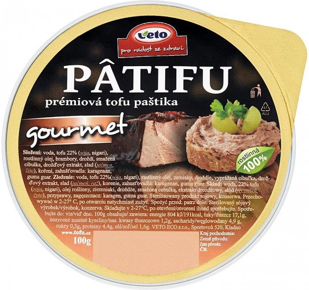 Prémiová paštika s jemnou chutí droždí, sladu a specifické směsi koření, vyráběná českou firmou jen a pouze z rostlinných surovin jako je například tofu, brambor a řepkový olej. Neobsahuje GMO, glutamáty, umělá aromata, konzervanty ani chemické přísady. Skvěle se hodí pro přípravu pohoštění či zdravého občerstvení, a to i pro milovníky masových paštik. Díky praktickému balení v Alu misce a dlouhé trvanlivosti bez nutnosti chlazení je ale také oblíbenou svačinkou na cesty, do práce nebo do školy.