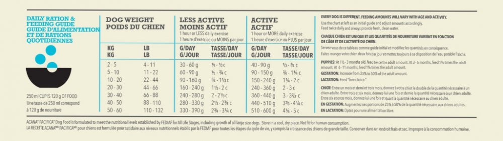 Psi (na 10 kg živé hmotnosti) - 1 polévková lžíce (18 g) za den