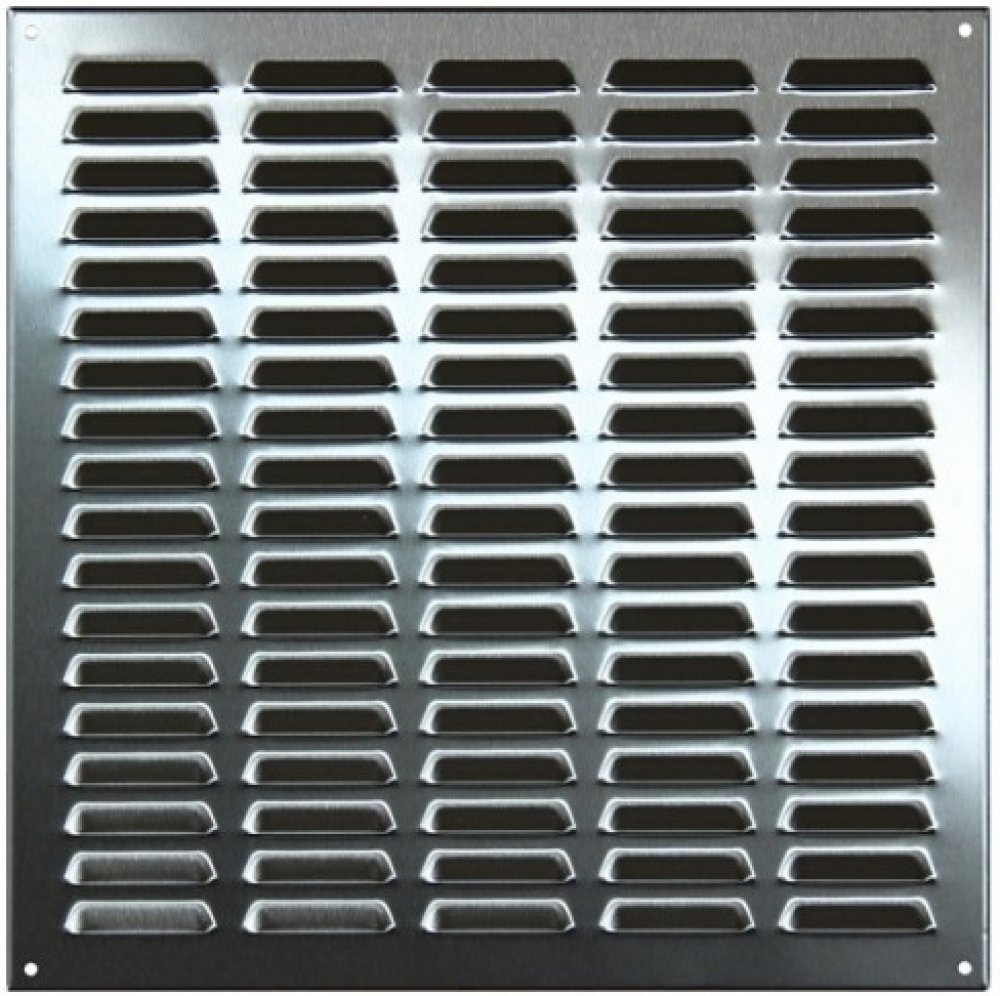 Větrací mřížka je vyrobena z broušeného nerezového plechu o síle 0,8 mm.