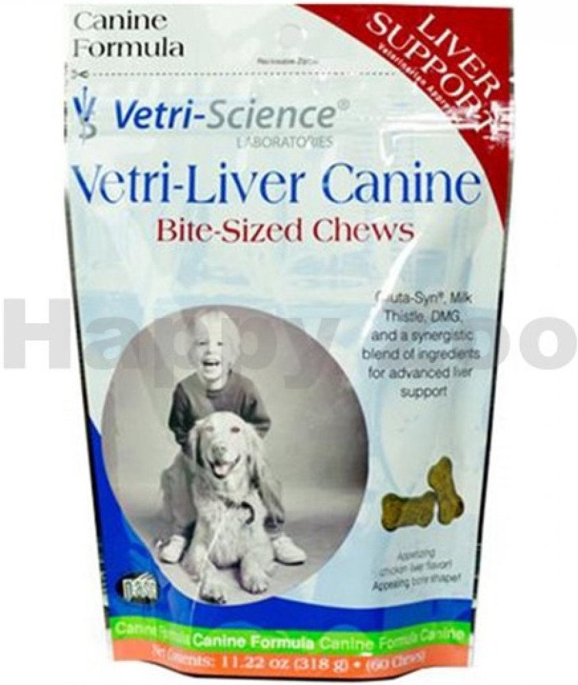 Detoxikace jater psů. Žvýkací pamlsek Vetri Liver Canine obsahuje 15 faktorů, které synergicky podporují zdraví jater a jsou obsažené ve vysoce stravitelných žvýkacích pamlscích s příchutí kuřecích jater. Tato receptura je navržená k podpoře zdraví jater, metylace a jejich detoxifikačních funkcí.