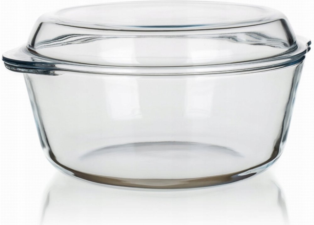 Skleněný kulatý pekáč s víkem 2,17 l je vyrobený z tvrdého boritokřemičitého skla, které je velmi odolné mechanicky i teplotně (odolnost +300 / -40 stupňů). Výhodou skla je dlouhá životnost, hygienická nezávadnost (je hladké a neporézní), snadno se udržuje (lze mýt v myčkách na nádobí), je ekologické. Varné sklo patří mezi žádané materiály v moderní kuchyni.