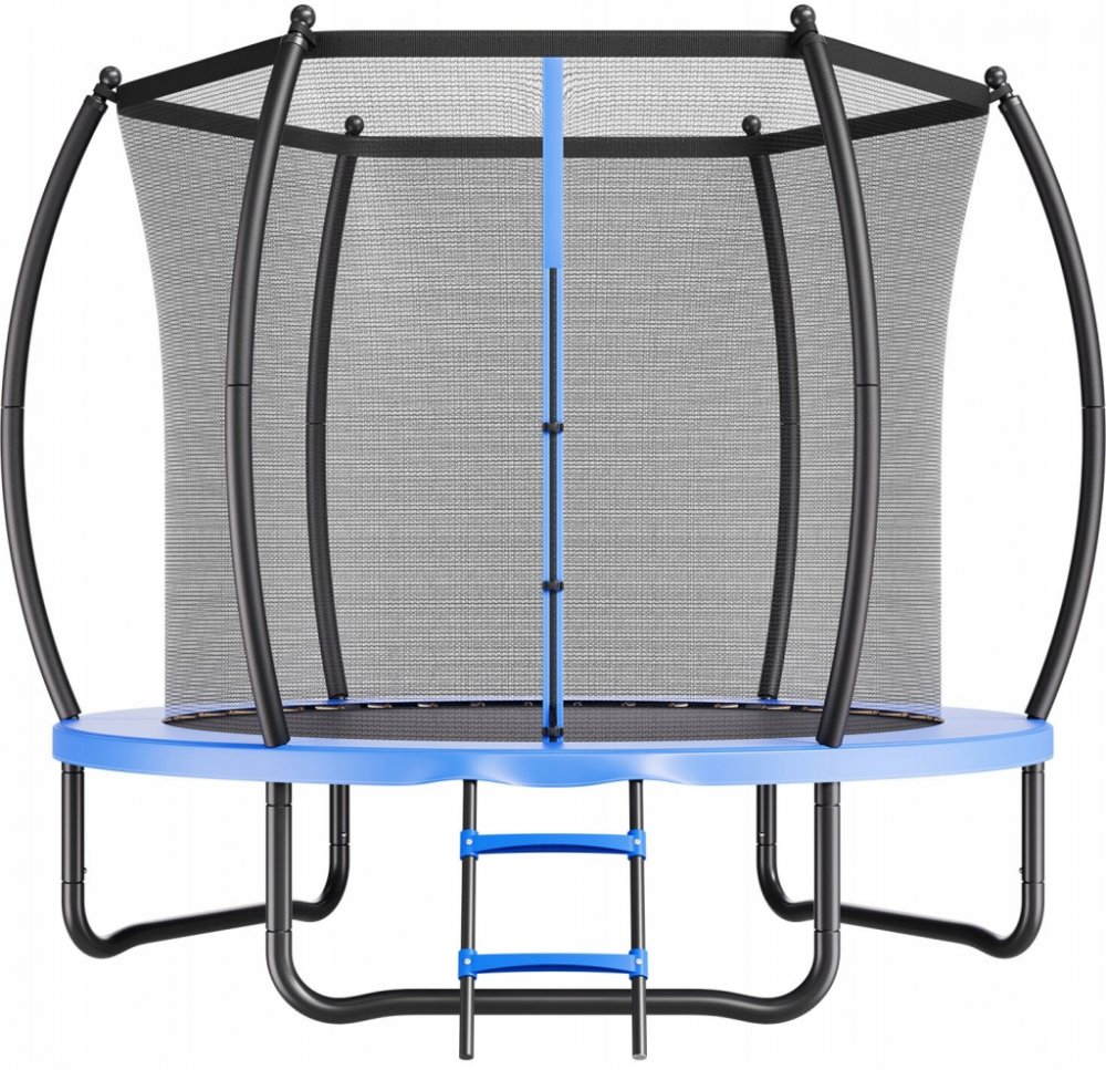 Robustní a odolná: Rekreační trampolína má vylepšený celoocelový rám, který je odolný vůči ohybu. Díky třem nohám ve tvaru písmene U je odolný a pevný. Kovové části jsou pokryty odolným zinkovým povlakem, který chrání před korozí. 48 pružin zajišťuje stabilní a bezpečný odraz při každém skoku
