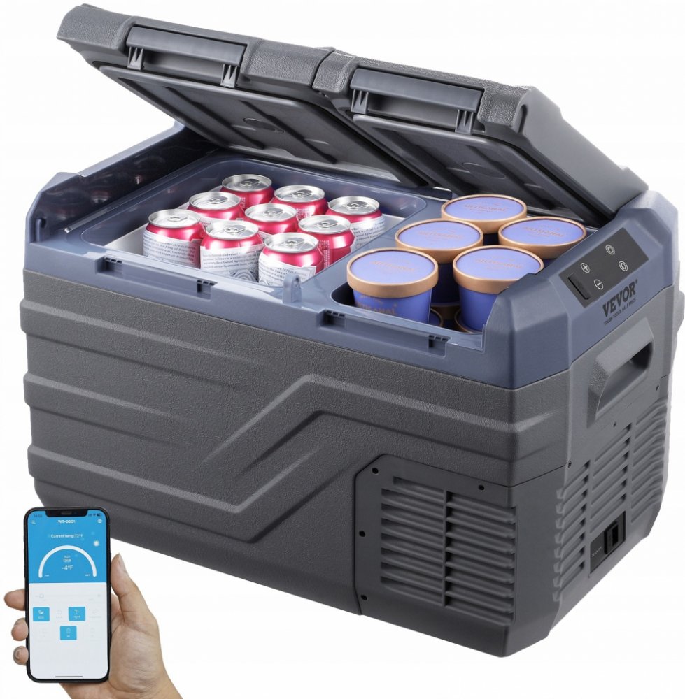 Ovládání přes LED displej a Bluetooth: Ovládací panel LED umožňuje přímo sledovat provozní stav autochladničky a kdykoli upravit teplotní rozsah. Na panelu můžete nastavit libovolnou teplotu v rozmezí -20 °C až 20 °C / -4 °F až 68 °F. Elektrický chladič má také režim Bluetooth, který umožňuje připojení k mobilní aplikaci pro dálkové ovládání.