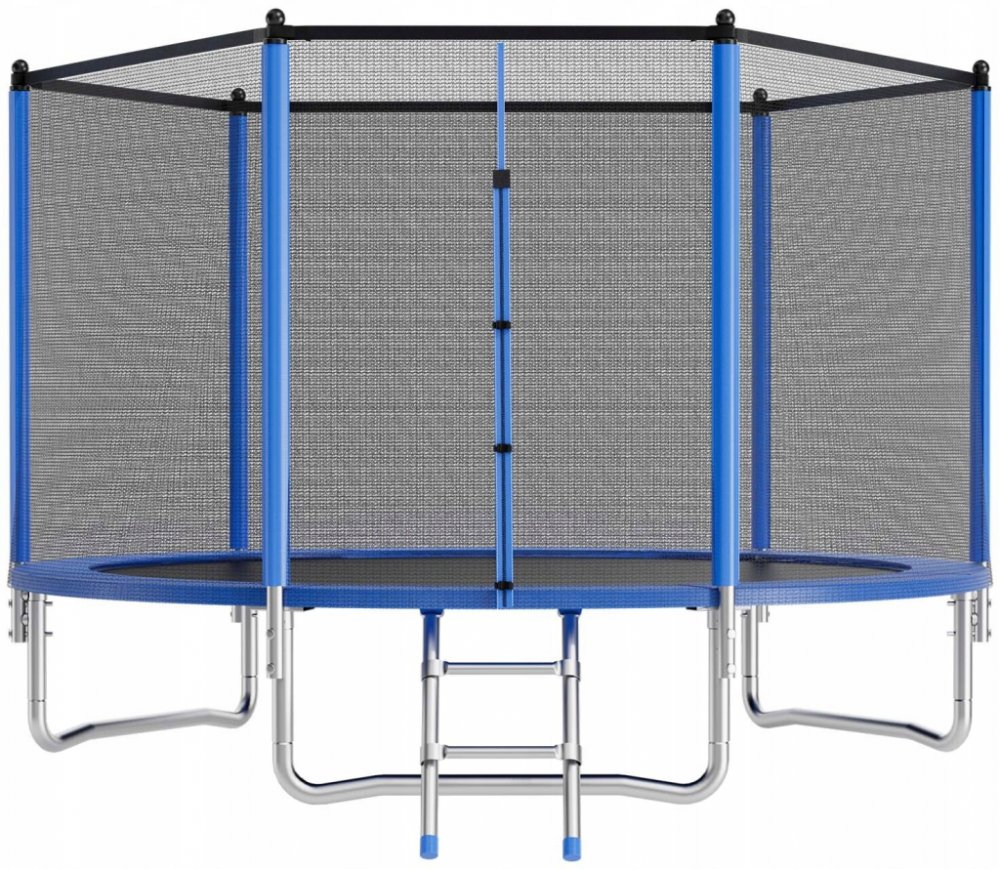 Pevná a trvanlivá: rekreační trampolína má vylepšený celoocelový rám, který je odolný proti ohýbání. Je podepřený třemi nohami ve tvaru ve tvaru písmene a je trvanlivý a odolný. Kovové části jsou pokryty zinkovou vrstvou odolnou proti opotřebení, která chrání před korozí. 54 pružin zajišťuje stabilní a bezpečný odraz při každém skoku