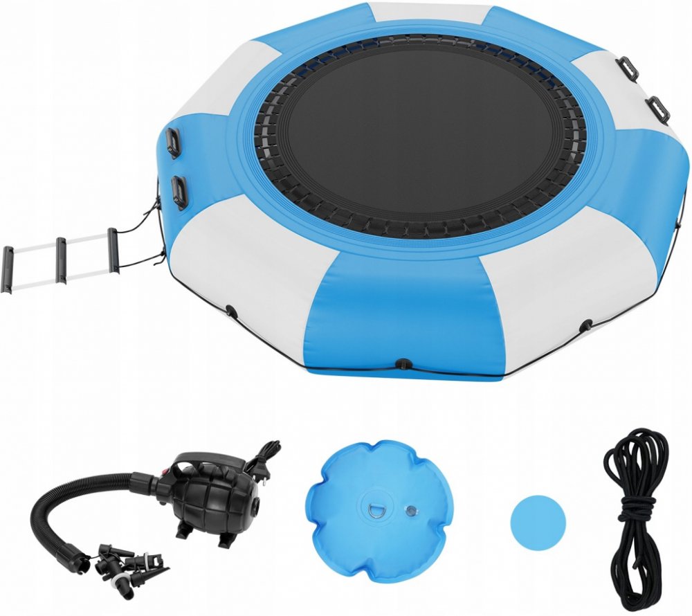 Je vybaveno 600w motorem nafukování z čisté mědi, proces nafukování je nepřetržitý. Tato plovoucí trampolína vyžaduje minimální dobu sestavení a rozestavení. Po vyfouknutí se stává kompaktním a lehkým, což usnadňuje přepravu z jednoho místa na druhé.