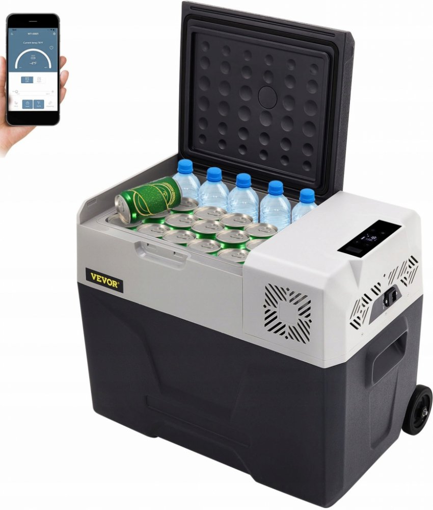 LED displej a Bluetooth ovládání: LED ovládací panel umožňuje přímo zobrazit provozní stav autochladničky a kdykoli upravit rozsah teplot. Na panelu můžete nastavit libovolnou teplotu mezi -20 °C a 20 °C. Elektrická chladnička je také vybavena režimem Bluetooth, který se připojuje k mobilní aplikaci pro dálkové ovládání.