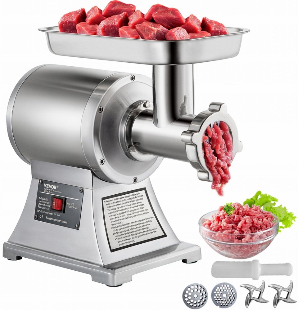 Náš elektrický mlýnek na maso je rychlý a pohodlný způsob přípravy dokonalého mletého masa. Vyrobeno z potravinářského nerezového materiálu, zdravé a odolné při použití. S 1100W výkonným motorem dokáže umlít maso až 150 kg/330 liber za hodinu. Jednoduchá obsluha efektivně šetří čas a energii. Dvě brusné desky (6 mm, 8 mm) dodávané pro hrubé nebo jemné broušení. Vhodné pro r...