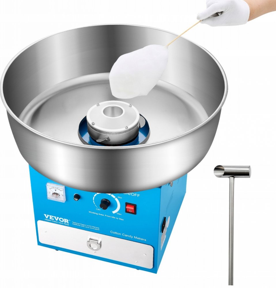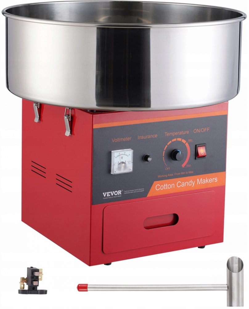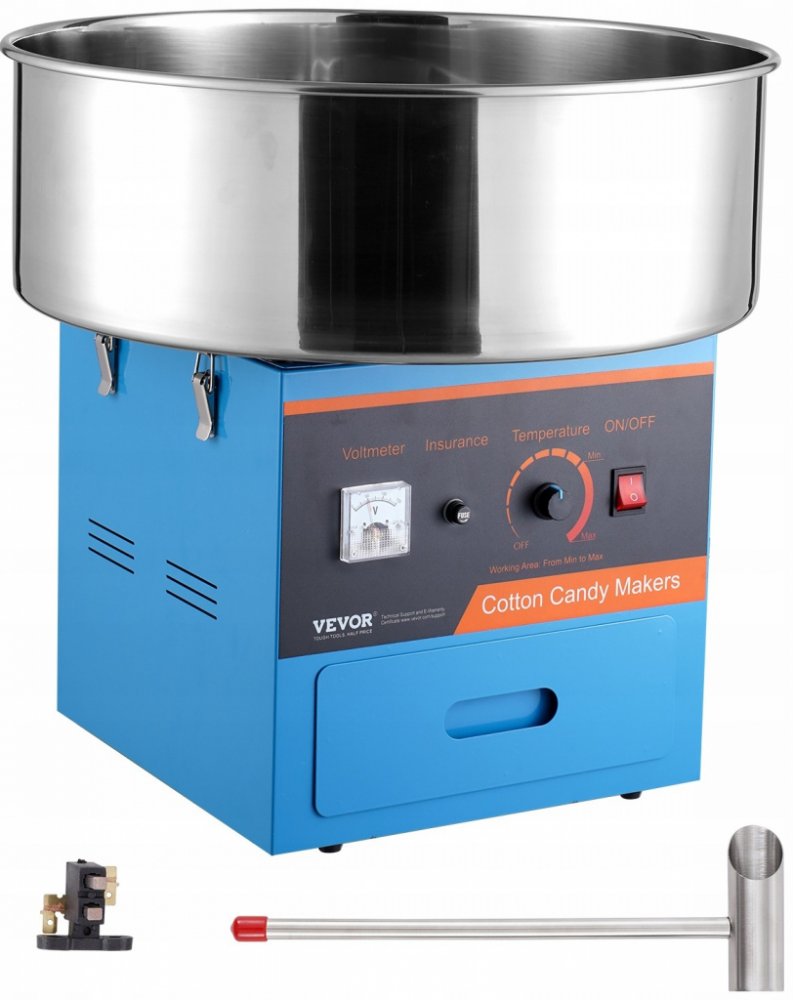 Regulace teploty: Na rozdíl od běžných, náš elektrický výrobník cukrové vaty je vybaven voltmetrem a ovladačem napětí. Změnou napětí můžete jednoduše nastavit teplotu. Pokud chcete vyzkoušet různé ochucené cukry, budete to absolutně potřebovat