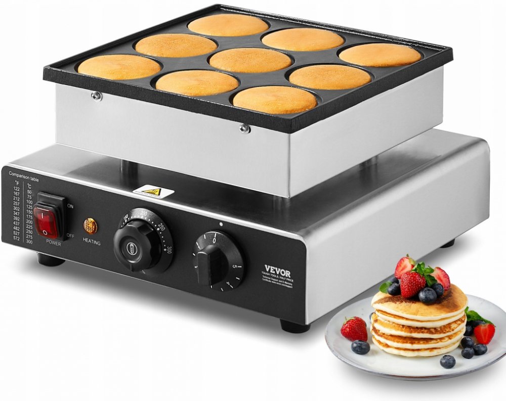 Rychlá příprava vynikajících palačinek: Náš 850W vysoce výkonný holandský palačinkář dokáže nezávisle vyrobit 9 lahodných mini vaflí (přibližně Ø76 mm) najednou, křupavých zvenčí a nadýchaných uvnitř, což vám ušetří čas a poskytne snídani bez námahy. Rovnoměrně rozmístěná topná tělesa zajišťují rovnoměrné propečení vašich vaflí. Připravte se na lahodné vafle plněné vašimi oblíbenými polevami.